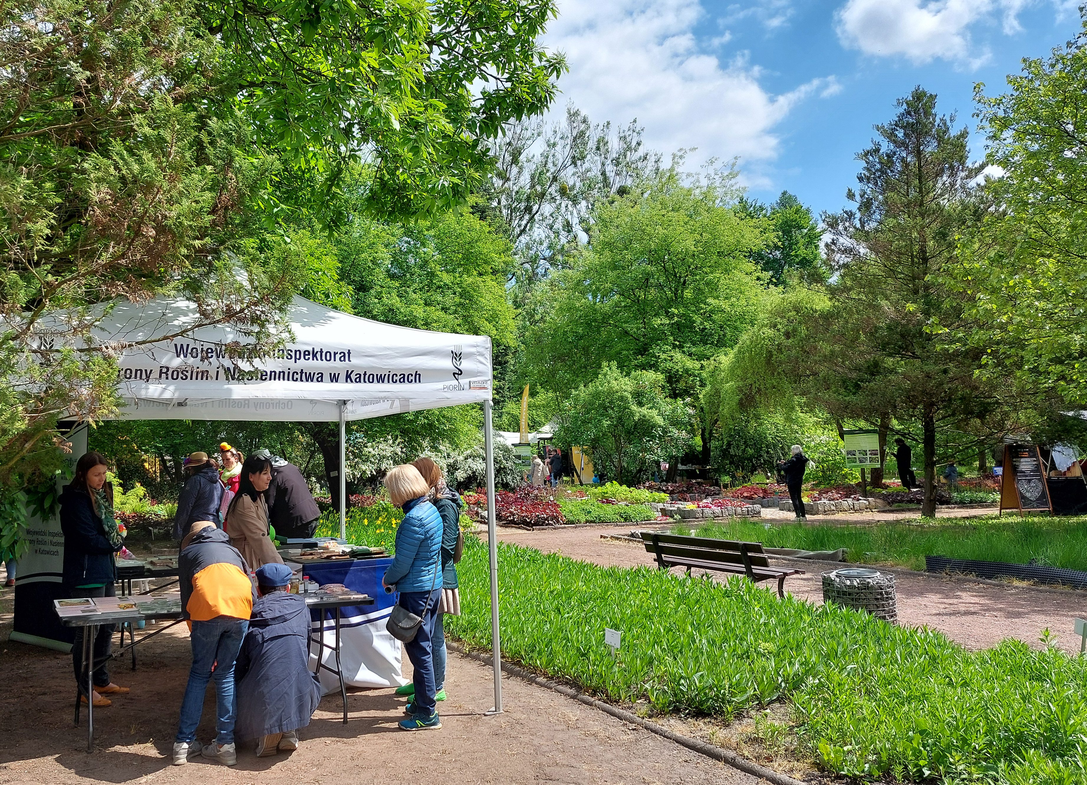 W niedzielę 11 maja spotkaliśmy się z ogromnym zainteresowaniem zwiedzających, zarówno dorosłych, jak i dzieci. Naszą intencją było przybliżenie wiedzy o zakresie działań Inspekcji i o tym jak ważna jest jej rola w dbałości o zdrowie roślin i bezpieczeństwo żywności. Dzieliliśmy się wiedzą o roślinach, sposobach ochrony ich zdrowia i patentach na dobrą kondycję, np. o biologicznych metodach ochrony roślin czy prawidłowym i bezpiecznym stosowaniu środków chemicznych. Wyjaśnialiśmy, czym na co dzień zajmują się „lekarze roślin”, czyli inspektorzy Inspekcji Ochrony Roślin Nasiennictwa. Odpowiadaliśmy na wiele pytań dotyczących roślin, GMO, środków ochrony roślin i innych problemów, które zadawali nam uczestnicy, a kierownik Oddziału w Gliwicach, pani Monika Sobańska wraz z panią doktor Moniką Gajecką z Uniwersytetu Śląskiego w Katowicach, w roli ekspertek opowiadały podczas slow-talk o „sportach” w świecie roślin czyli mutacjach genetycznych występujących naturalnie, bez ingerencji człowieka. Takie „sporty” to zmiany w wyglądzie roślin, niewystępujące wcześniej, jak np. wybarwione na biało liście u rośliny, która zwyczajowo ma tylko zielone liście czy podwójny kwiat u rośliny z zazwyczaj pojedynczymi kwiatami.