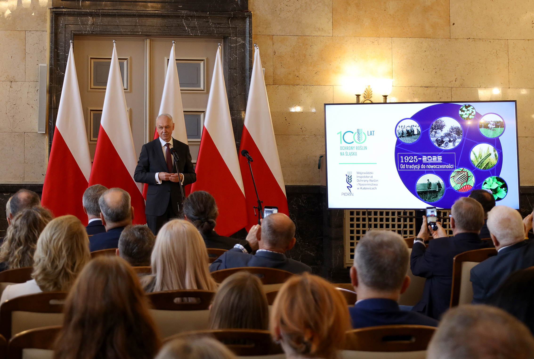 W wyjątkowej scenerii Sali Marmurowej Śląskiego Urzędu Wojewódzkiego w Katowicach odbyły się uroczyste obchody 100-lecia służby ochrony roślin na Śląsku. To wyjątkowe wydarzenie zgromadziło wielu gości – przedstawicieli administracji państwowej i samorządowej, świata nauki, rolnictwa, a także obecnych i byłych pracowników Inspekcji. Wszyscy spotkali się, by wspólnie świętować wiek pracy na rzecz bezpieczeństwa i zdrowia roślin.