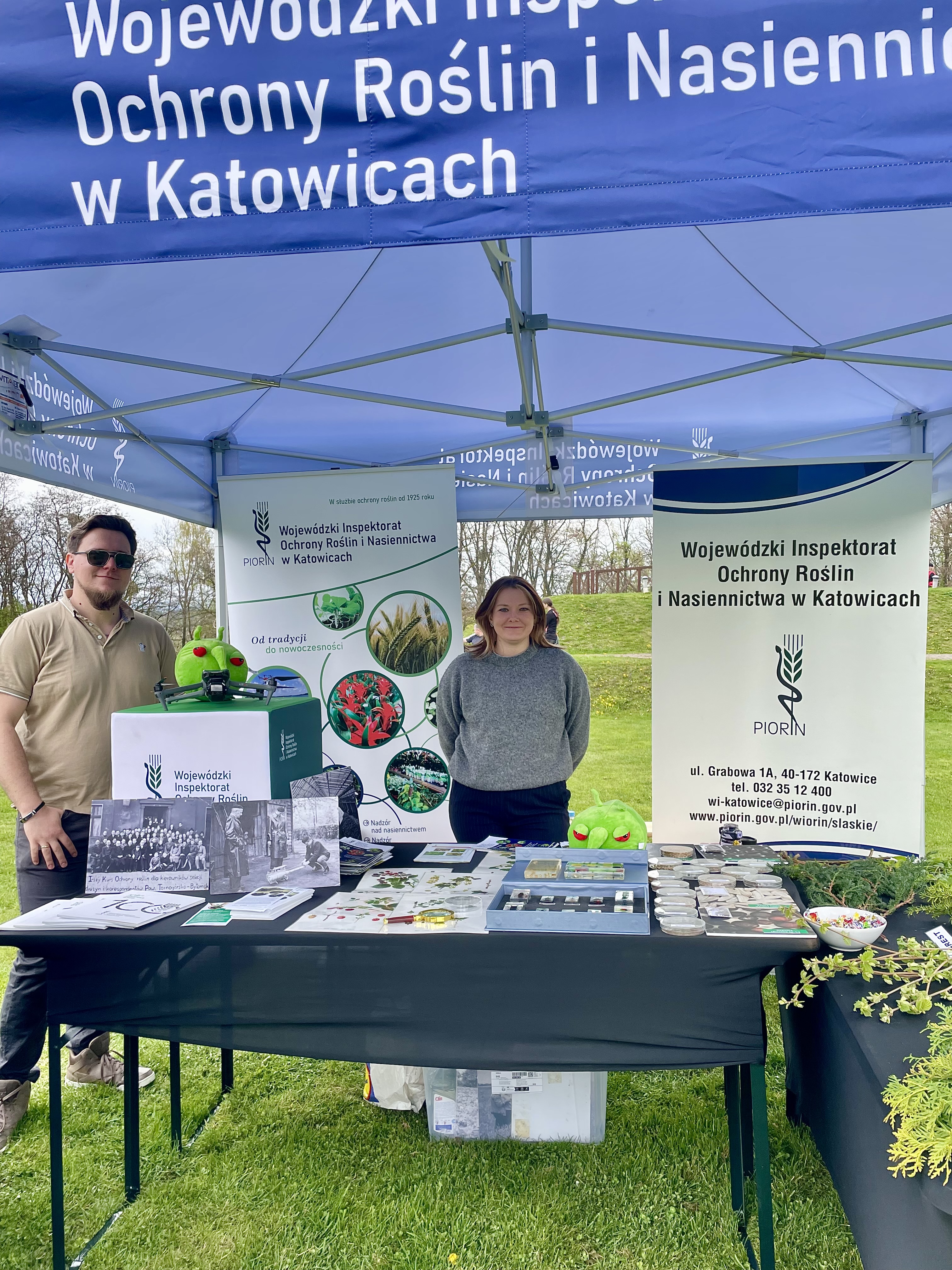 Wśród licznych atrakcji nie zabrakło także stoiska Wojewódzki Inspektorat Ochrony Roślin i Nasiennictwa w Katowicach. Inspektorzy przygotowali dla odwiedzających coś więcej niż tylko informacje — była to prawdziwa zielona lekcja w praktyce. W przystępny i swobodny sposób opowiadali o zdrowiu roślin, zagrożeniach czyhających w ogrodach oraz o tym, jak dbać o krzewy, by rosły bujnie i bezpiecznie.