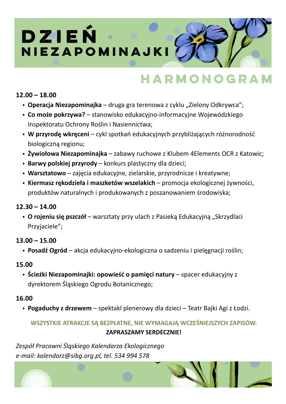 Zapraszamy na „Dzień Niezapominajki” do Śląskiego Ogrodu Botanicznego w Mikołowie w niedzielę 25 maja