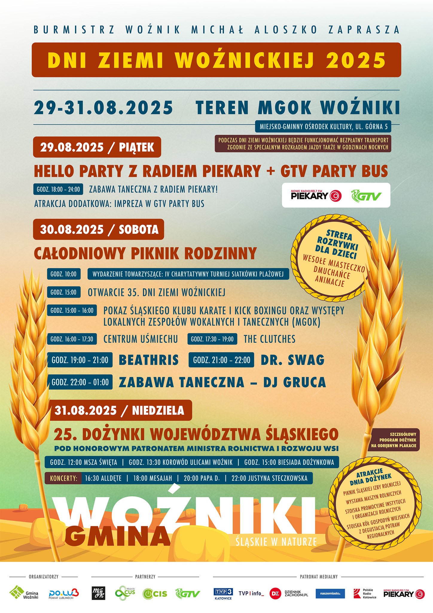 • 29.08 (piątek) Dni Ziemi Woźnickiej — energetyczne Hello Party z Radiem Piekary i mobilnym studiem GTV Party Bus