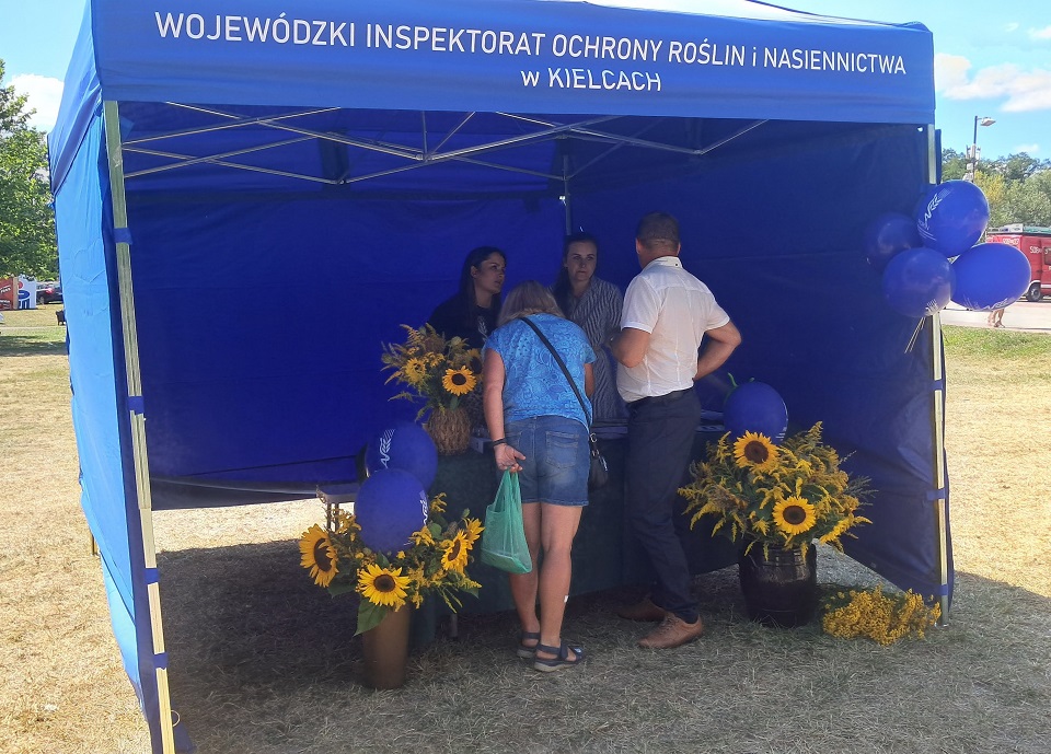 W tegorocznym wydarzeniu udział wzięli również inspektorzy Wojewódzkiego Inspektoratu Ochrony Roślin i Nasiennictwa w Kielcach, Oddziału w Staszowie. Przygotowali oni piękne, bogato udekorowane stoisko informacyjne, które przyciągało uwagę mieszkańców i gości. Podczas dożynek inspektorzy przypominali odwiedzającym o niezwykle ważnej kwestii – konieczności ochrony roślin i plonów przed groźnymi chorobami oraz szkodnikami, które mogą zagrażać rolnictwu i ogrodnictwu w całej Unii Europejskiej. Szczególny nacisk położono na edukację dotyczącą zakazu wprowadzania do UE roślin i produktów roślinnych, które mogą być źródłem groźnych agrofagów. Przyświeca temu kampania #PlantHealth4Life, której celem jest podnoszenie świadomości na temat kluczowej roli zdrowia roślin w naszym codziennym życiu oraz zachęcanie do indywidualnych działań na rzecz ich ochrony. Maskotką kampanii jest PESTY, zielony szkodnik który szczególnie spodobał się dzieciom odwiedzającym stoisko inspekcji. Dzięki rozmowom i materiałom informacyjnym uczestnicy mogli dowiedzieć się, jak zapobiegać rozprzestrzenianiu się organizmów kwarantannowych. Inspektorzy podkreślali, że każdy – zarówno rolnik, jak i ogrodnik-amator – ma wpływ na ochronę rodzimych upraw, stosując odpowiedzialne praktyki i przestrzegając przepisów fitosanitarnych.