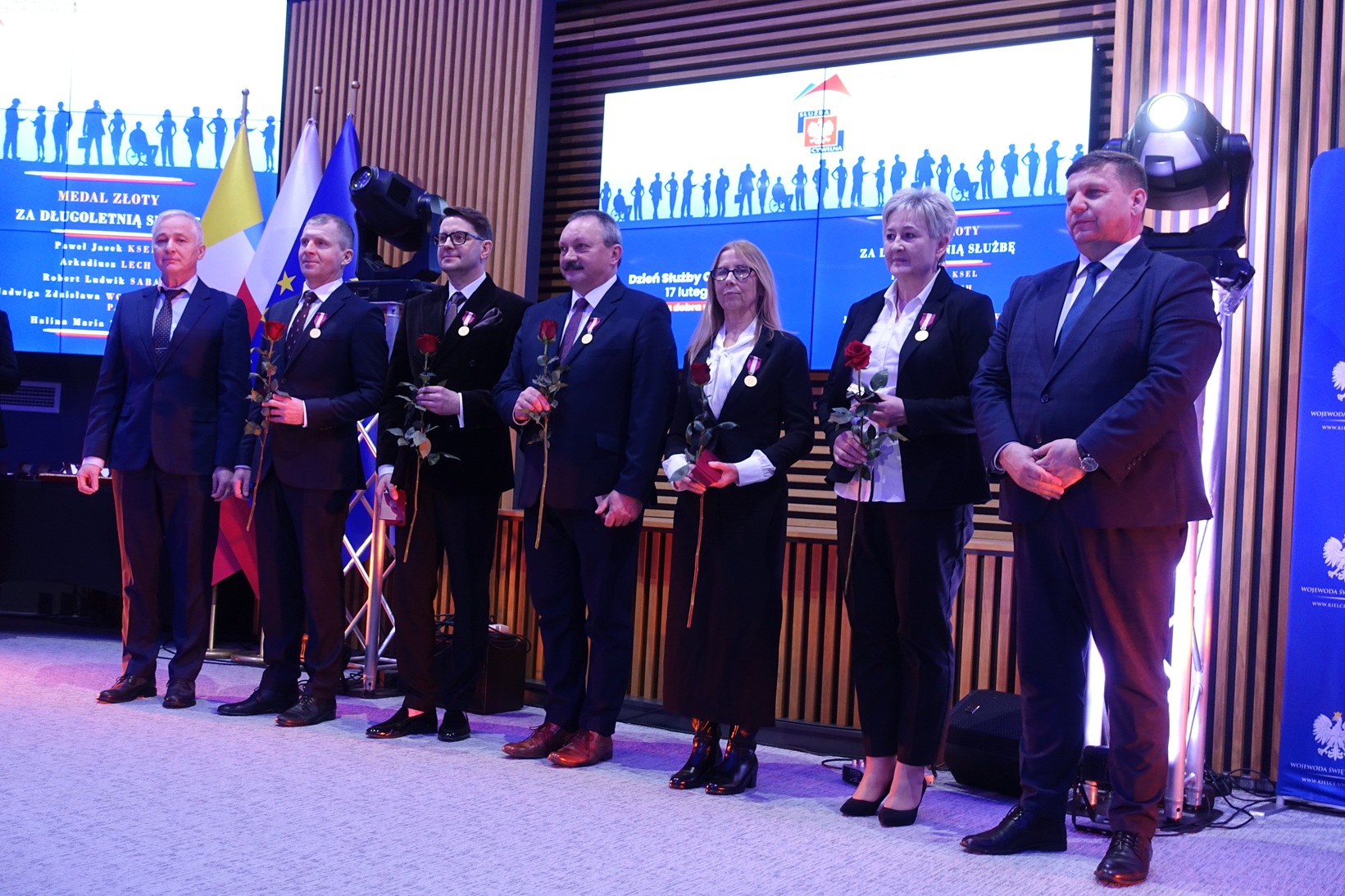 W dniu dzisiejszym- 17 lutego 2026 r. obchodzono Święto Służby Cywilnej - wyjątkowy dzień będący wyrazem uznania dla pracy, zaangażowania oraz profesjonalizmu członków korpusu służby cywilnej. Z tej okazji w siedzibie Świętokrzyskiego Urzędu Wojewódzkiego w Kielcach odbyła się uroczysta ceremonia wręczenia Złotych, Srebrnych i Brązowych Medali za Długoletnią Służbę.