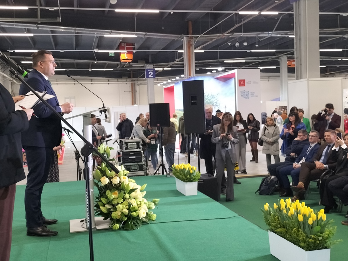 Minister Rolnictwa i Rozwoju Wsi Pan Stefan Krajewski wygłosił przemówienie w którym zaakcentował znaczenie pszczelarstwa dla bezpieczeństwa żywnościowego, zadeklarował wsparcie dla rolników i pszczelarzy, w tym w obliczu rosnących cen, oraz podkreślił konieczność solidarności w branży rolniczej. Na koniec wystąpienia serdecznie promował polski miód w odniesieniu do jego naturalnego pochodzenia, wysokiej jakości i tradycji pszczelarskich.
