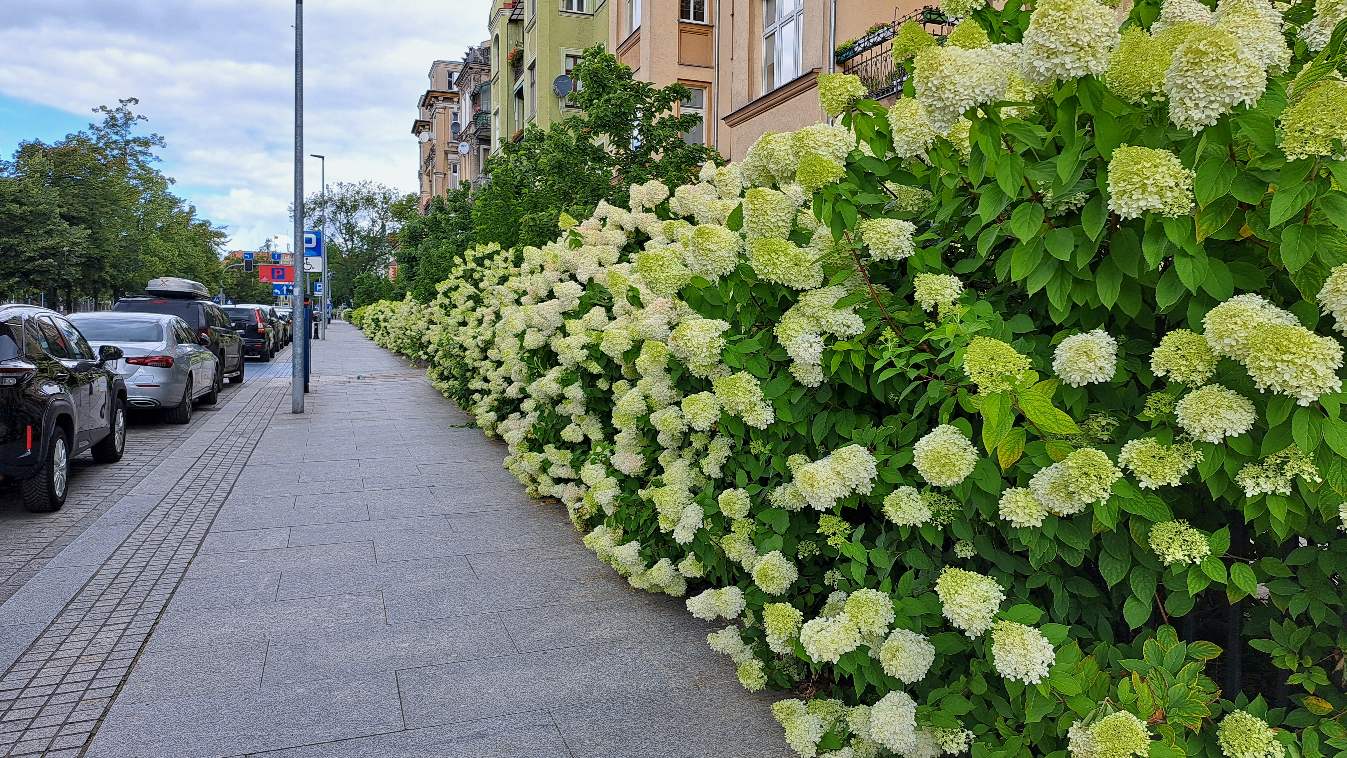 Szczecin wraz ze zmianą pory roku zaskakuje barwami i formami kwietnych kompozycji. Wiosną podziwialiśmy krokusowe dywany i przepiękne, różnokolorowe kwiaty magnolii, a latem szczecińskie parki i ogrody zachwycają kwitnącymi hortensjami. Hortensja (Hydrangea) jest niewysokim krzewem z rodziny hortensjowatych, na którą składa się ok. 78 gatunków. Można je spotkać w południowo-wschodniej Azji oraz w obu Amerykach. W naturze rosną w lasach i na skalistych stokach, często wspinając się na drzewa i skały. Hortensje słyną z okazałych kulistych lub stożkowatych kwiatostanów, które tworzy nawet do tysiąca kwiatów. W zależności od gatunku i odmiany mogą przybierać formę krzewu, małego drzewka lub pnącza. Ich kwiaty zachwycają różnorodnością kolorów, które zmieniają się w trakcie kwitnienia, a także pod wpływem pH podłoża. Odczyn gleby ma duży wpływ na barwę kwiatów hortensji ogrodowej. I tak kwiaty roślin uprawianych w glebie kwaśnej (pH poniżej 5,5) przybierają głębokie, niebieskie odcienie. W glebie zasadowej (pH powyżej 6,0) kwiaty nabierają zabarwienia intensywnie różowego i czerwonego. Aby uzyskać zaskakujące efekty kolorystyczne ogrodnicy stosują w uprawie hortensji odpowiednie nawożenie wpływające na pH podłoża. W Szczecinie hortensje można spotkać w wielu miejscach, zarówno w ogrodach prywatnych, jak i w przestrzeni miejskiej. Hortensjowe nasadzenia dominują przede wszystkim w przedogródkach, w parkach i alejach. Coraz więcej krzewów hortensji pojawia się wśród zieleni osiedlowej. Szczególnie pięknie prezentują się kwiaty odmiany bukietowej „Limelight” w Alei Jana Pawła II, które wprost „wylewają się” z przedogródków i co roku niezmiennie zachwycają mieszkańców Szczecina. Wystarczy spojrzeć na załączone zdjęcia aby ulec ich czarowi.