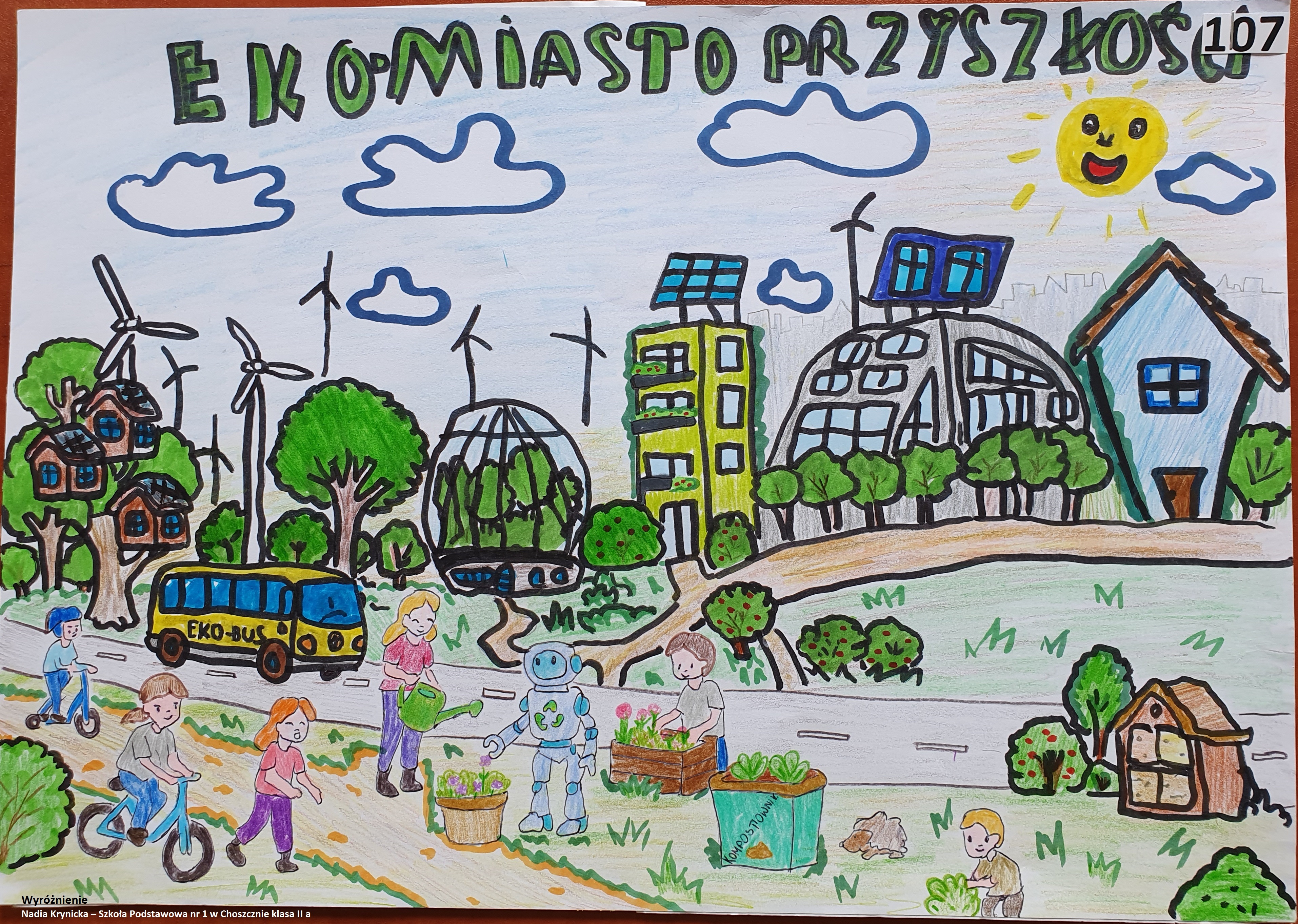 Wszystkim uczestnikom serdecznie gratulujemy i musimy zaznaczyć, że wybór najlepszych prac dla komisji konkursowej nie był łatwym zadaniem. Niewątpliwie wszystkie prace zasługują na zaprezentowanie na wystawie, którą zamierzamy zorganizować w najbliższym czasie w siedzibie Wojewódzkiego Inspektoratu Ochrony Roślin i Nasiennictwa w Koszalinie. O dokładnym terminie poinformujemy Państwa na naszej stronie. Mamy także ogromną nadzieję, że przedstawione przez dzieci wizje „Eko-miasta przyszłości” zostaną kiedyś choć w części zrealizowane bo w takim świecie chcielibyśmy żyć.
