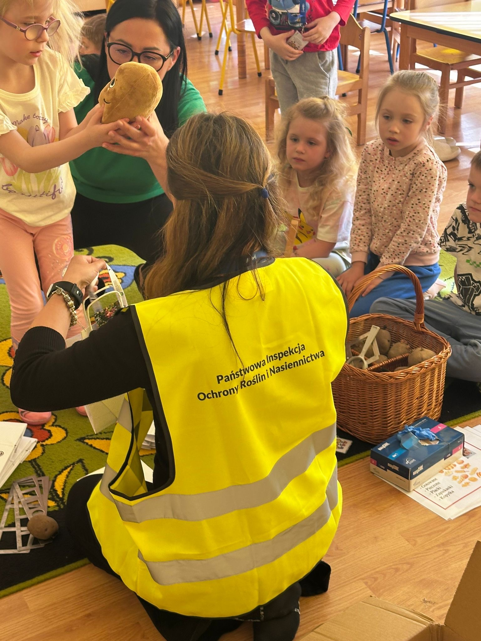 Chyba każdy ma miejsce, do którego wraca z chęcią. Dla naszych koleżanek z Oddziału WIORiN w Białogardzie takim miejscem jest Przedszkole Miejskie nr 3 „Niezapominajka” w Białogardzie. Przedszkolaki są niezwykle wdzięcznymi słuchaczami, chętnie biorą udział w dyskusji, zaskakują swoją wiedzą, obdarzają swoją radością i zarażają pozytywnym podejściem do świata. Tym razem panie inspektor poprowadziły zajęcia edukacyjne w formie zabawy w grupie „Krasnali” i zaprezentowały dzieciom ciekawostki dotyczące produkcji oraz badania ziemniaka. Spotkanie miało na celu przybliżenie najmłodszym tematyki związanej z uprawą najpopularniejszej w naszym województwie rośliny uprawnej, ziemniaka, oraz pokazanie pracy inspektora ochrony roślin. Zajęcia rozpoczęła się bajka opowiadająca historię ziemniaka w Polsce, która wzbudziła duże zainteresowanie wśród uczestników. Następnie dzieci dowiedziały się, jak różnie nazywane są ziemniaki w różnych regionach naszego kraju oraz jakie potrawy można z nich przygotować. Rozmowa na temat ulubionych dań była okazją do śmiechu i integracji. Duże zainteresowanie wzbudził także temat szkodników ziemniaka oraz obserwacje ziemniaków przez lupę. Była także okazja wykonania pomiarów bulw przy pomocy kalibrownicy. Ochotnicy z zaciekawieniem przymierzali specjalne kombinezony wykorzystywane podczas pobierania prób weryfikacyjnych w przechowalniach. Zajęcia miały również swoją część praktyczną podczas której dzieci podzielone na małe grupki sadziły ziemniaki do doniczek. Dzięki temu dzieci będą mogły samodzielnie obserwować w najbliższych tygodniach proces wzrostu i rozwoju bulw. Okazało się, że posadzone ziemniaki nie są jedynymi roślinami jakimi zajmują się przedszkolaki. Inspektorzy mieli możliwość zobaczenia, jak dzieci dbają o wcześniej posadzone roślinki i jak one pięknie rosną. W nagrodę za wiedzę i zaangażowanie, na zakończenie, każdy uczestnik otrzymał legitymację Małego Inspektora Ochrony Roślin oraz upominki w postaci gadżetów sfinansowanych ze środków Wojewódzkiego Funduszu Ochrony Środowiska i Gospodarki Wodnej w Szczecinie w ramach realizowanego projektu „Edukacja ekologiczna najmłodszych”.