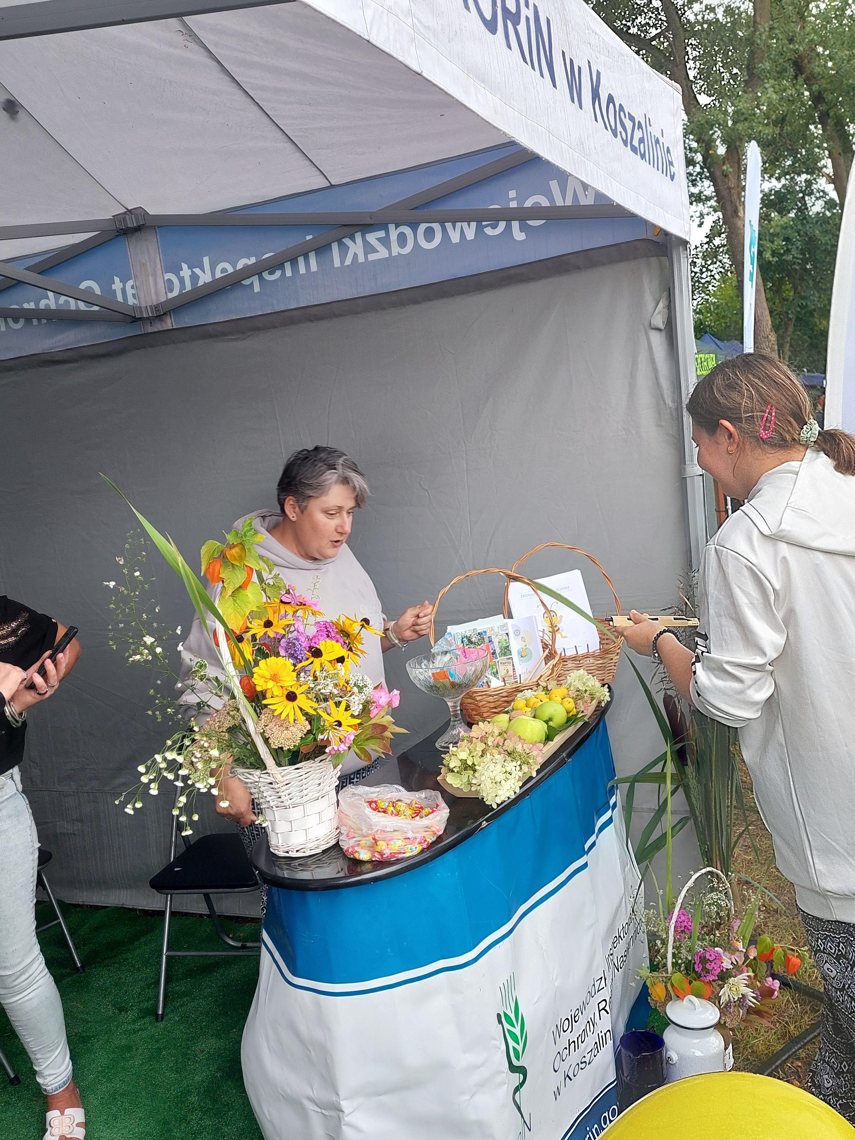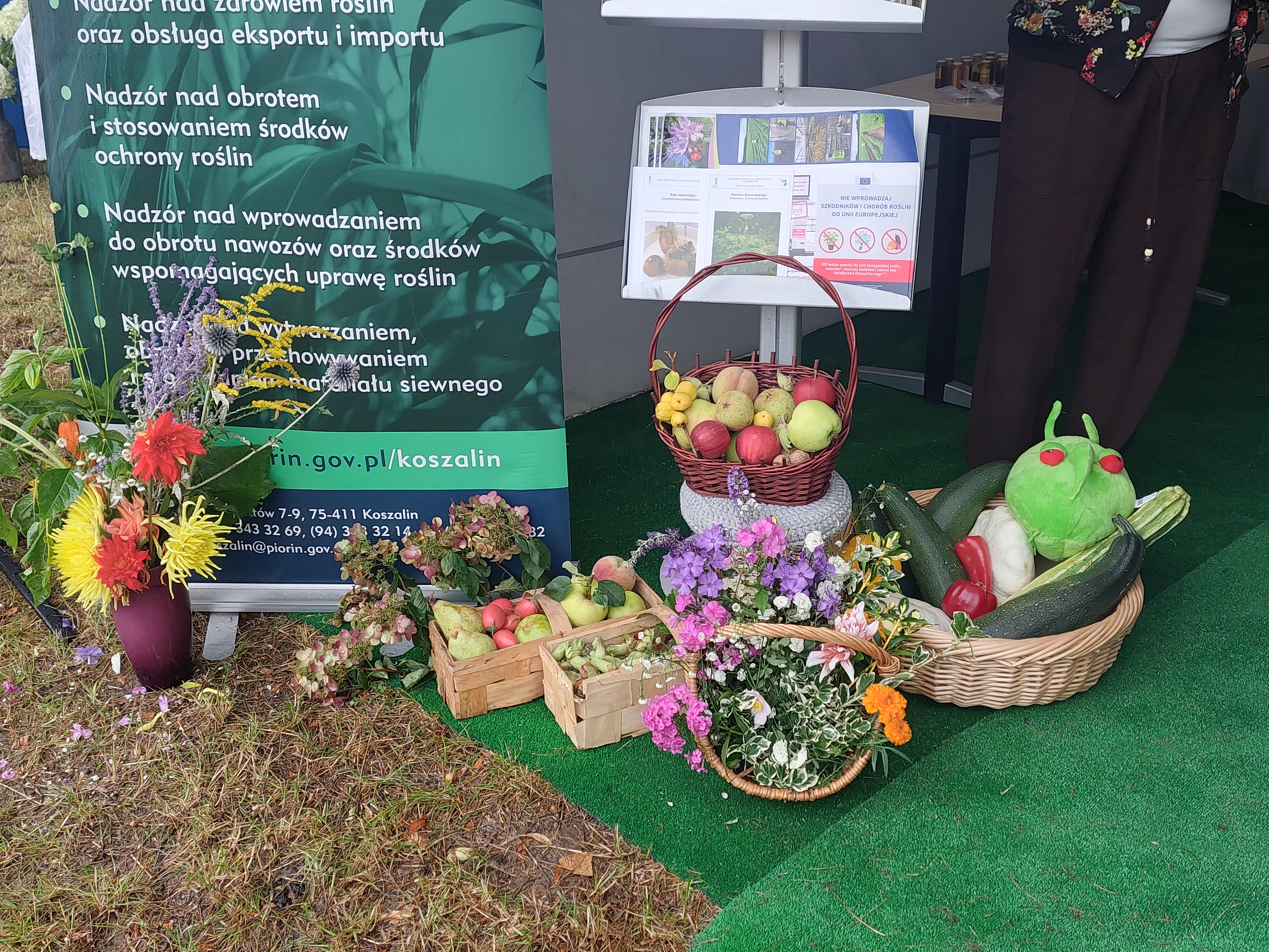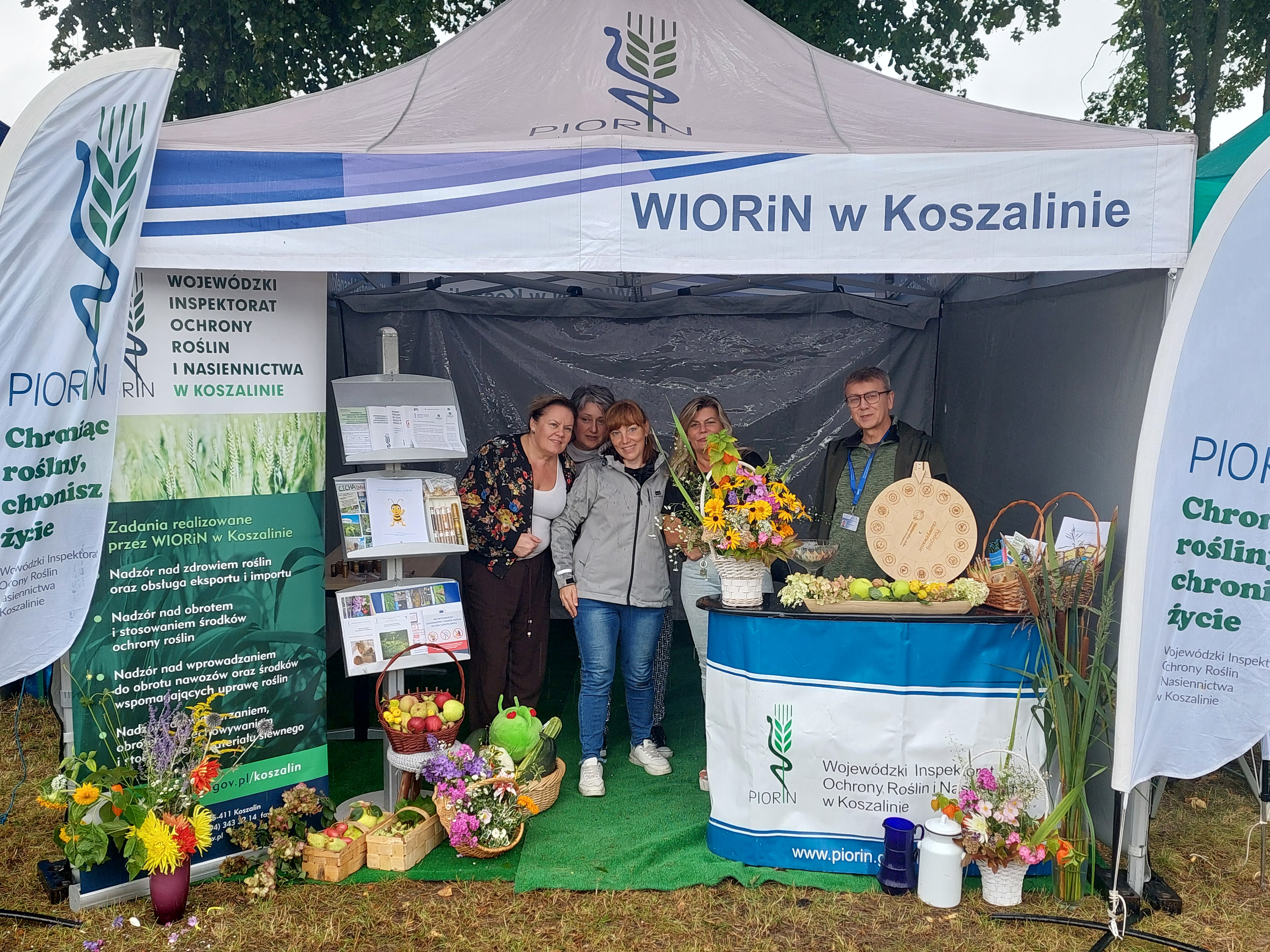 W sobotę 6 września 2025 r. na terenie Zespołu Szkół nr 6 im. Stanisława Staszica w Szczecinku odbyły się dożynki powiatowe. Pomimo deszczowej pogody to wyjątkowe wydarzenie zgromadziło lokalną społeczność, rolników, artystów, gości i było okazją aby wspólnie świętować zakończenie żniw oraz podziękować za trud włożony w uprawę ziemi. Uroczystości tradycyjnie rozpoczęto mszą świętą, po której na gości czekało wiele atrakcji przygotowanych przez wystawców. Najmłodsi mogli uczestniczyć w różnego rodzaju animacjach; warsztatach plastycznych, przejechać się na kucykach, skorzystać z malowania buziek, a także zobaczyć pokazy zwierząt gospodarskich. Dorośli mieli możliwość skorzystania z degustacji regionalnych potraw, a także poznać tajniki warsztatów rękodzielniczych. Mimo deszczowej pogody, stoisko obsługiwane przez inspektorów Wojewódzkiego Inspektoratu Ochrony Roślin i Nasiennictwa w Koszalinie było pełne pozytywnej energii. Pracownicy Inspekcji informowali rolników i ogrodników o przepisach, wymaganiach oraz zagrożeniach związanych z uprawą roślin. Nie brakło rozmów z rolnikami oraz mieszkańcami, którzy chętnie dopytywali o kwestie związane z naszą pracą. Ogromną popularnością cieszyło się koło fortuny. Nie tylko najmłodsi uczestnicy, ale także dorośli chętnie brali udział w zabawie. Osoby, które poprawnie odpowiedziały na wylosowane pytanie, mogły wygrać ciekawe nagrody. Niewątpliwą atrakcją naszego stoiska był Pesty, symbol międzynarodowej kampanii #PlantHealth4Life. Co ciekawe, w tym roku nie był samotny, bowiem odwiedziła go koleżanka, Kolorowa Gąsienica.