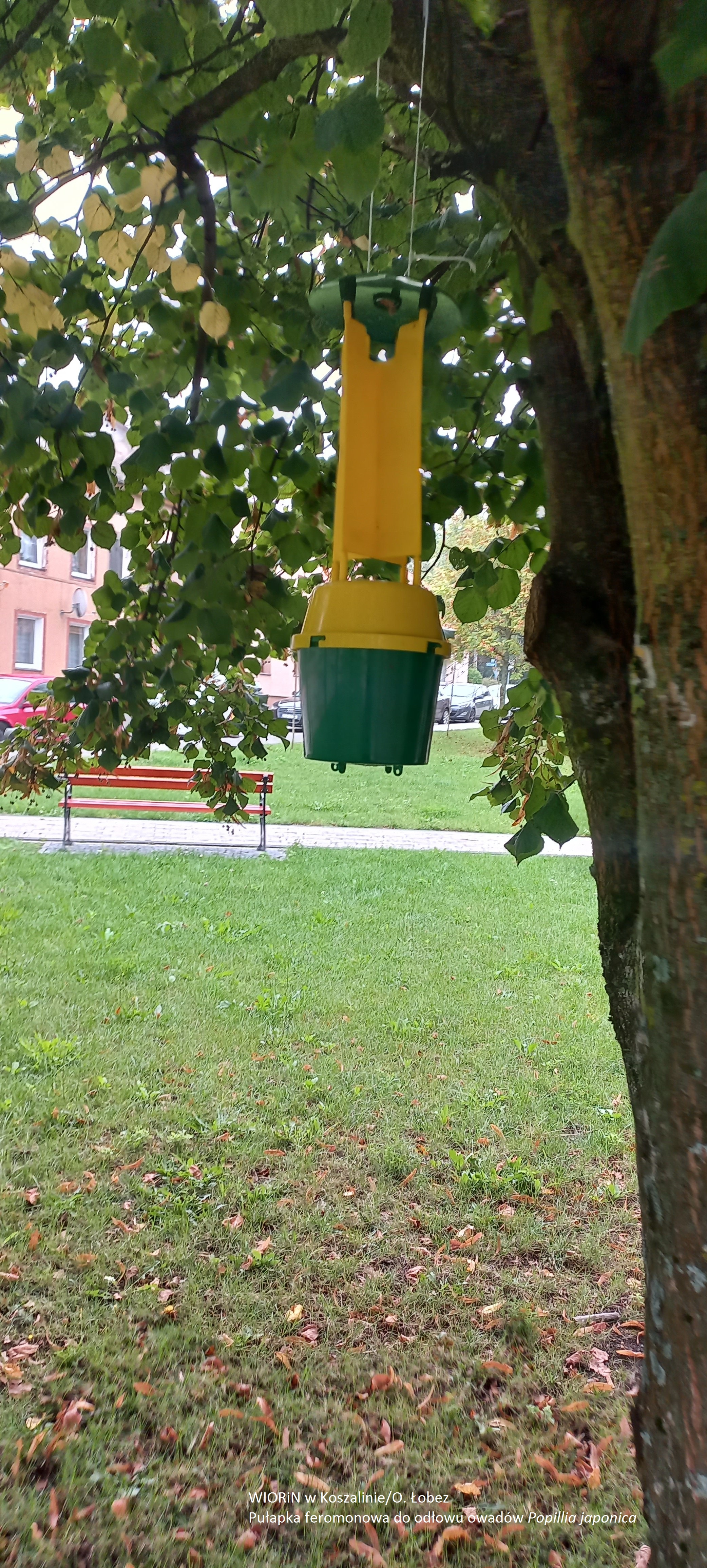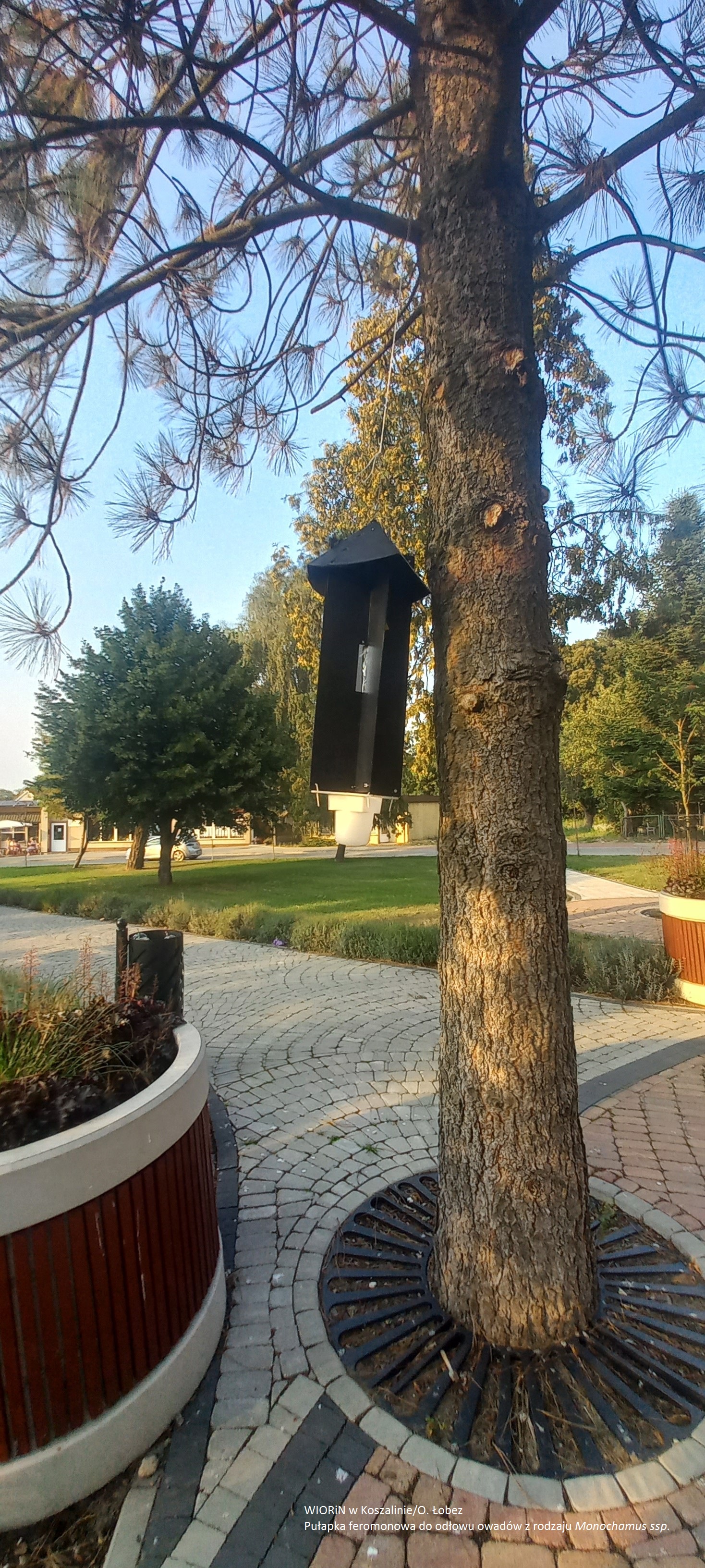 Wojewódzki Inspektorat Ochrony Roślin i Nasiennictwa, Oddział w Łobzie, również w bieżącym roku prowadzi monitoring dwóch organizmów podlegających obowiązkowi zwalczania – nicienia węgorka sosnowca (Bursaphelenchus xylophilus) oraz chrząszcza popilii japońskiej (Popillia japonica). Celem tych działań jest wczesne wykrycie ewentualnych ognisk występowania obu gatunków, które mogą stanowić poważne zagrożenie dla drzewostanów i upraw w Polsce. Węgorek sosnowiec to mikroskopijny nicień przenoszony głównie przez chrząszcze z rodzaju żerdzianka (Monochamus). Jego żerowanie prowadzi do rozwoju choroby znanej jako więdnięcie sosny objawiającej się żółknięciem igieł, zamieraniem koron i szybkim obumieraniem drzew. Z kolei pochodząca z Japonii popilia japońska to żarłoczny gatunek chrząszcza, żerujący na ponad 300 gatunkach roślin – od drzew owocowych po rośliny ozdobne – powodując znaczne szkody w uprawach i ogrodach. Do wykrywania obecności tych agrofagów wykorzystywane są specjalistyczne pułapki feromonowe, które podlegają systematycznym kontrolom terenowym prowadzonym zgodnie z założeniami unijnego programu SMP (Single Market Programme). Program ten wspiera działania państw członkowskich Unii Europejskiej w zakresie wczesnego wykrywania oraz zapobiegania rozprzestrzenianiu się organizmów kwarantannowych. Pułapki rozmieszczane są w starannie dobranych lokalizacjach – miejscach sprzyjających występowaniu szkodników. Zawieszane są na kilka miesięcy, a feromony wabiące wymieniane są regularnie, aby zachować ich pełną skuteczność. Każdy typ pułapki jest precyzyjnie dopasowany do konkretnego gatunku szkodnika, co zapewnia wysoką skuteczność monitoringu. Nie są to przypadkowe konstrukcje, lecz elementy przemyślanego systemu opartego na wiedzy entomologicznej i doświadczeniu specjalistów. Zebrane podczas kontroli odłowione próbki owadów trafiają do wyspecjalizowanych laboratoriów, gdzie są identyfikowane i analizowane pod kątem obecności węgorka sosnowca oraz popilii japońskiej.