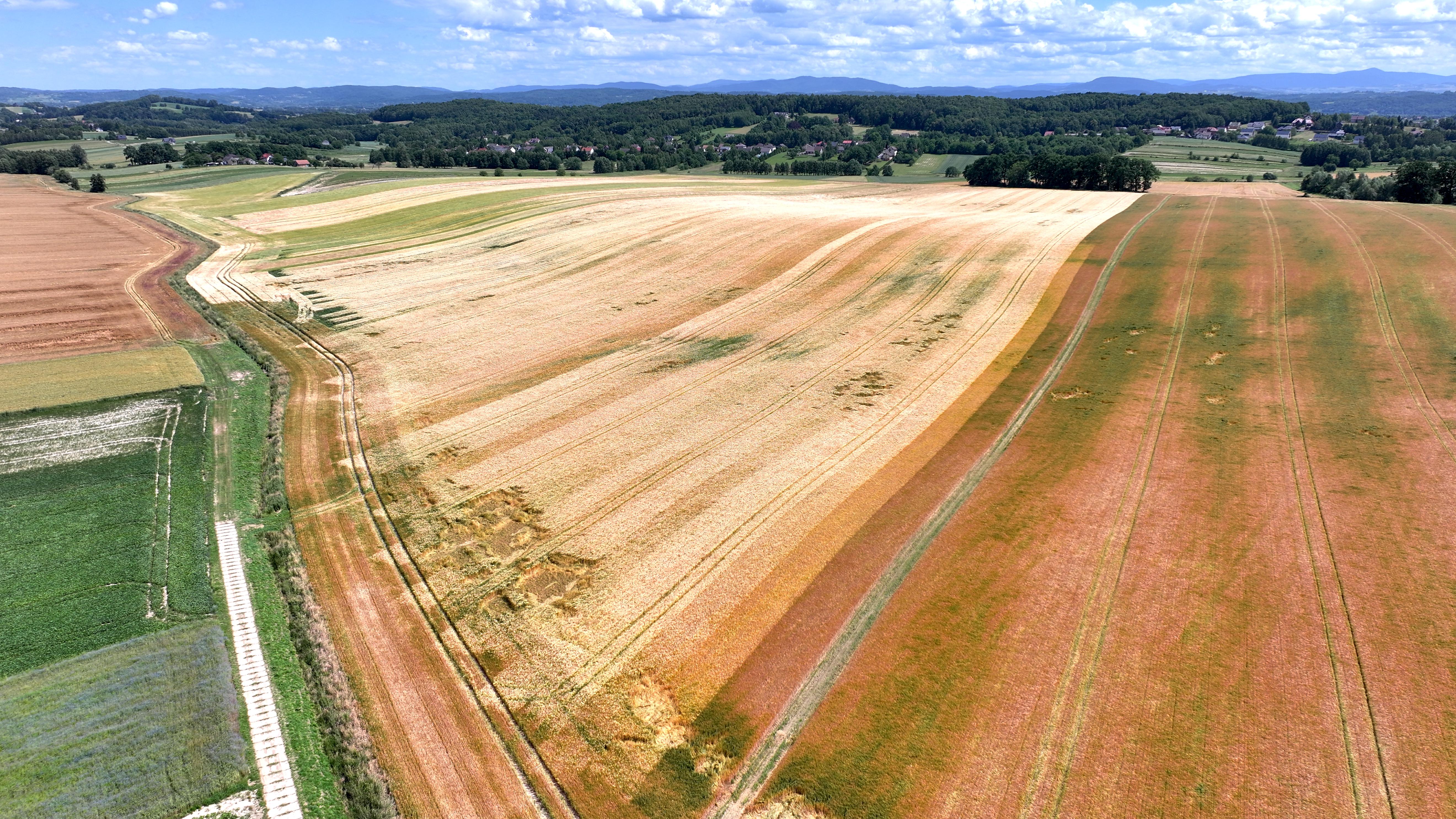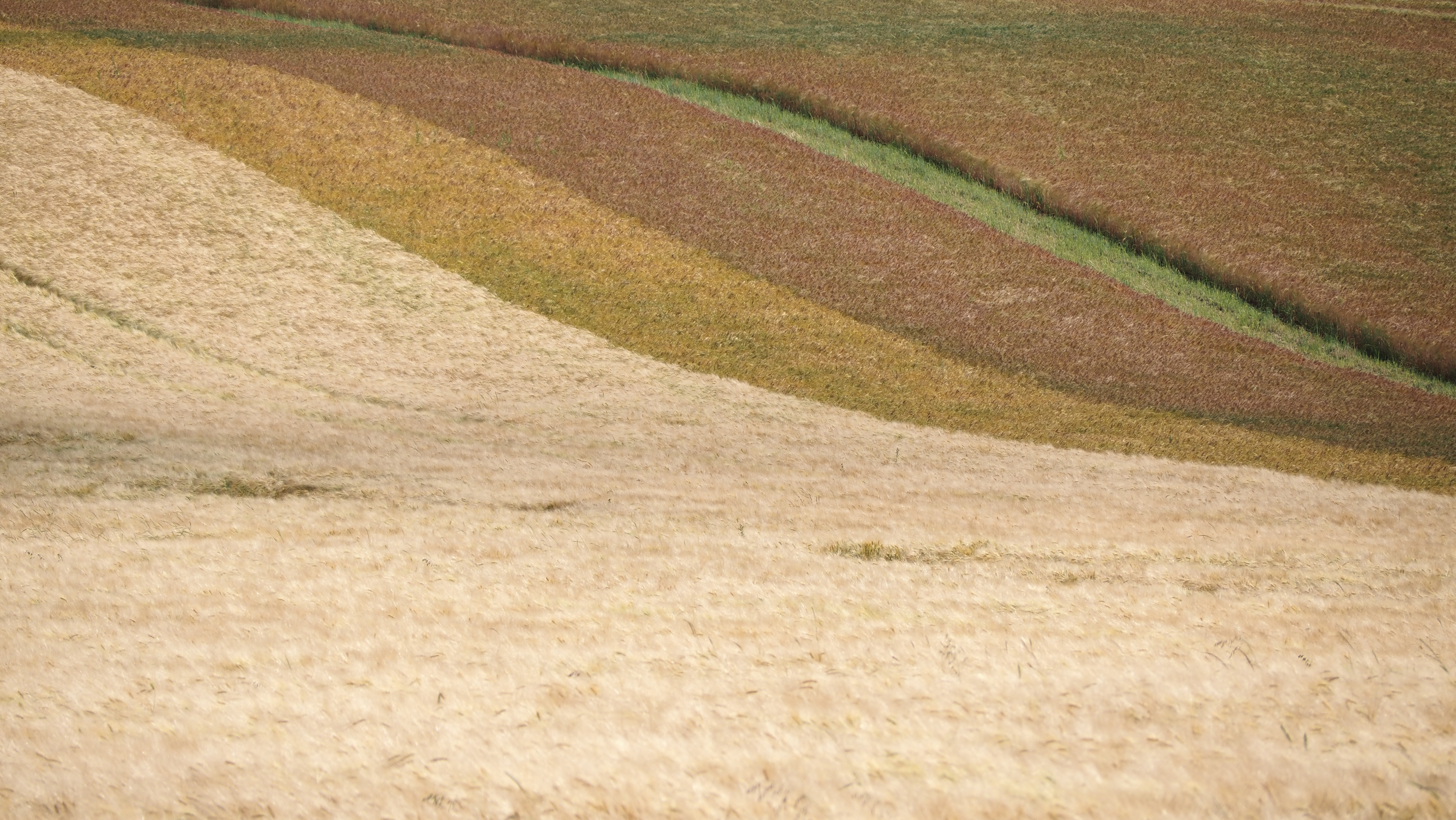 Pole widoczne na zdjęciu zostało obsiane kilkoma odmianami tego samego gatunku zboża. Ciekawe, czy zgadniecie, który to gatunek? Gdyby ktoś miał z rozpoznaniem kłopoty – odsyłamy do drugiego zdjęcia…
