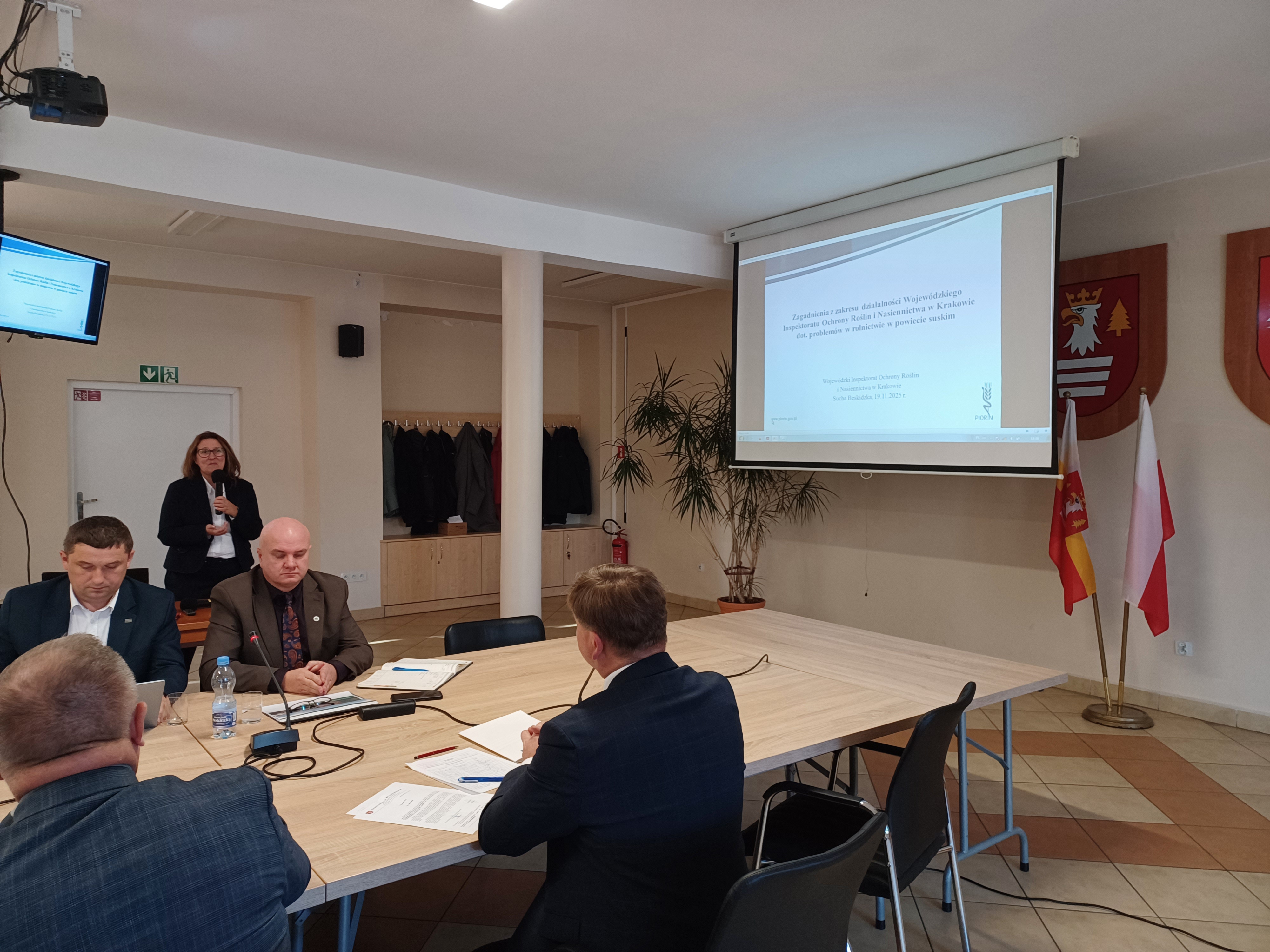 W dniu 19.11.2025 r. w siedzibie Starostwa Powiatowego w Suchej Beskidzkiej odbyło się posiedzenie Komisji Ochrony Środowiska i Integracji Lokalnej Rady Powiatu Suskiego z udziałem przedstawicieli gmin oraz instytucji wspierających rolnictwo z terenu Małopolski.