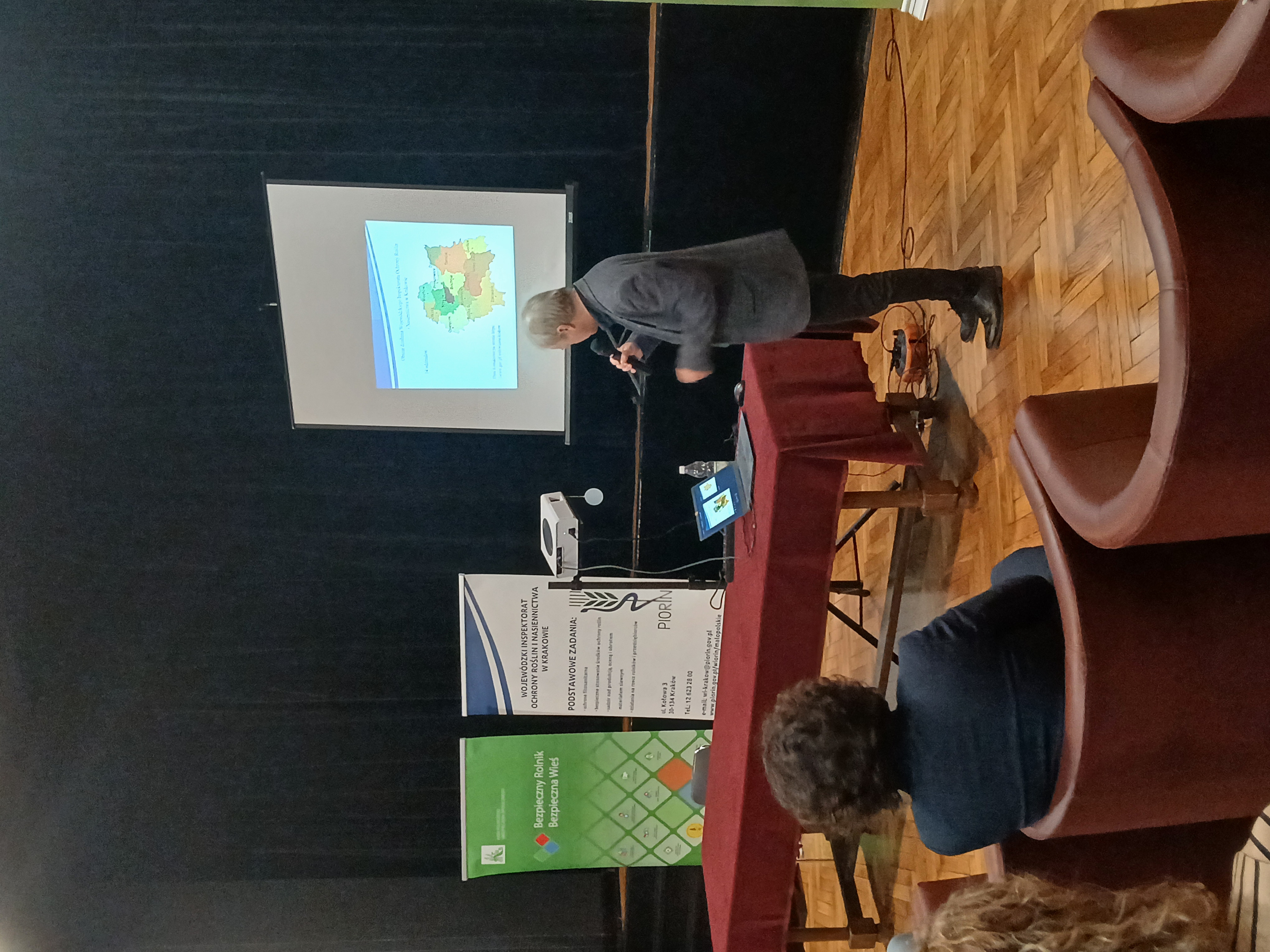 Zgromadzonym uczestnikom inspektorzy Oddziału WIORiN w Krakowie w czasie prelekcji przekazali informacje oraz rozdali ulotki dotyczące obowiązków nałożonych na producentów ziemniaka, informacje o możliwości skorzystania z dofinansowania do badań fitosanitarnych, o prawidłowości stosowania fumigantów, a także o właściwym oferowaniu materiału siewnego przez internet.