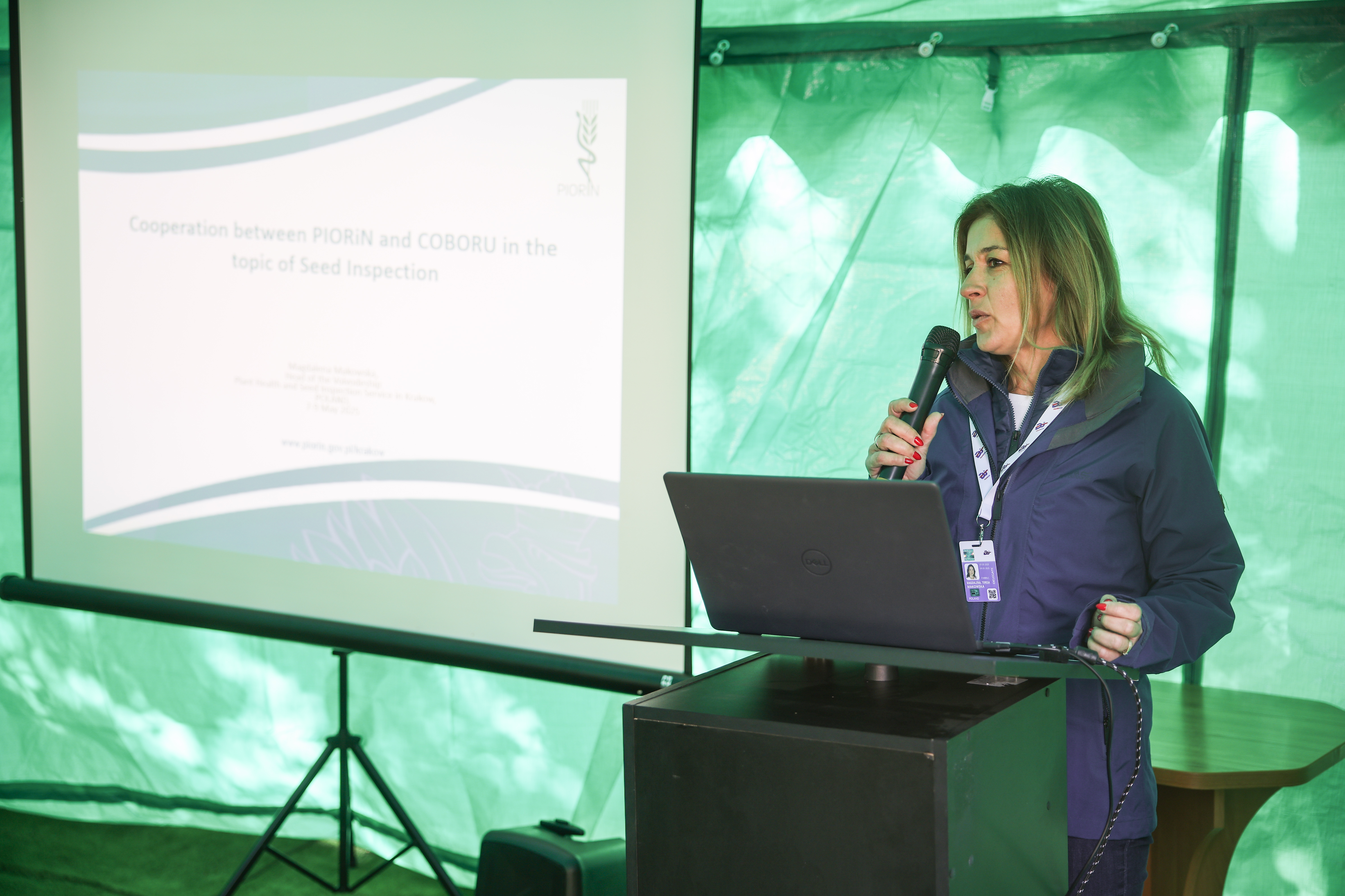 Wojewódzki Inspektorat Ochrony Roślin i Nasiennictwa w Krakowie przedstawił prezentację dot. współpracy Centralnego Ośrodka Badań Odmian Roślin Uprawnych (COBORU) i Państwowej Inspekcji Ochrony Roślin i Nasiennictwa (PIORiN) przy wykonywaniu zadań obu urzędów. Zaprezentowano poletka przygotowane na potrzeby szkoleniowe kwalifikatorów i omówiono system szkoleń organizowanych przez WIORiN w Krakowie. WIORiN w Łodzi przeprowadził pokaz użycia dronów w procesie oceny polowej.