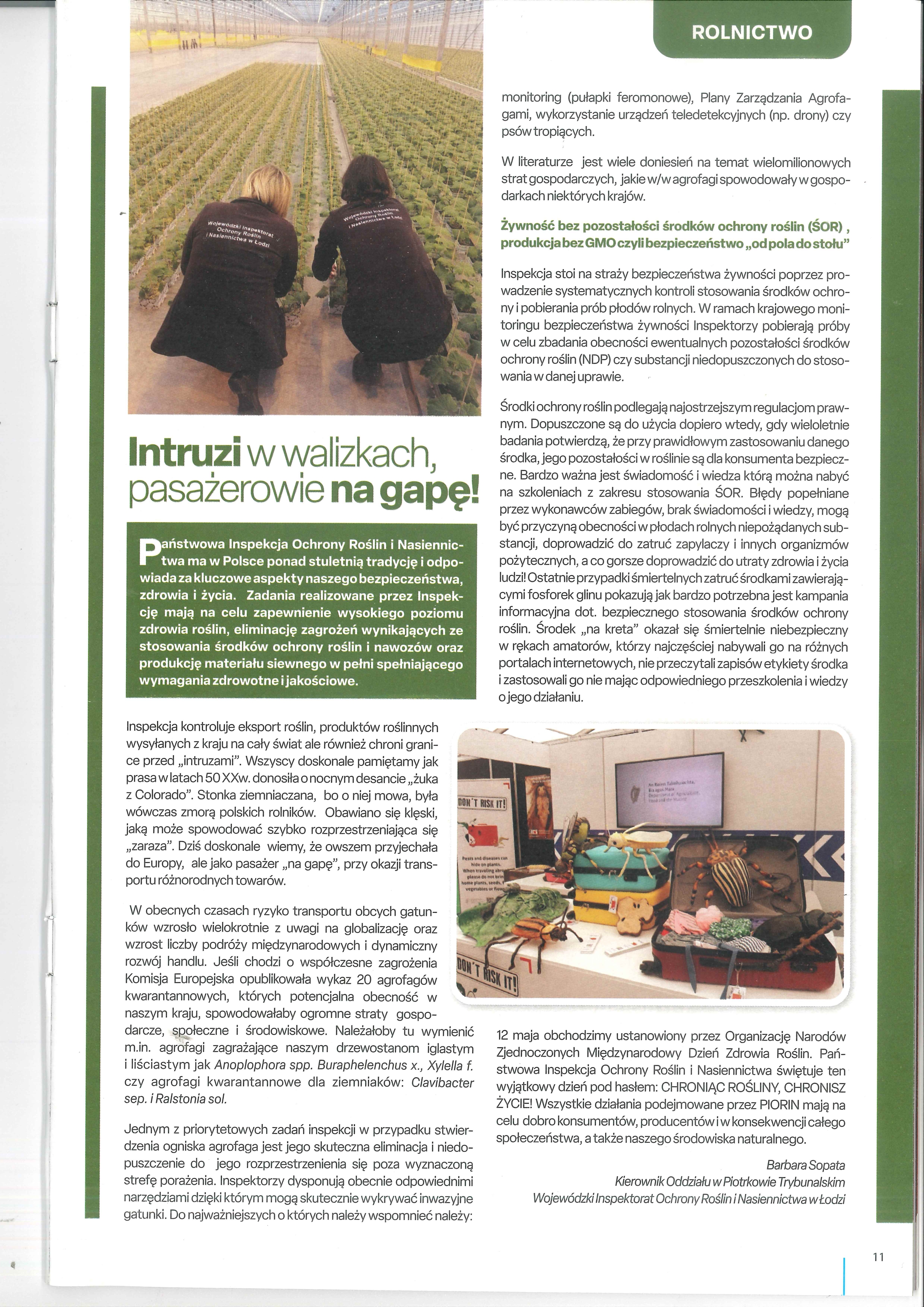 Autor: Barbara Sopata, Kierownik w Oddziale w Piotrkowie Trybunalskim, Wojewódzki Inspektorat Ochrony Roślin i Nasiennictwa w Łodzi