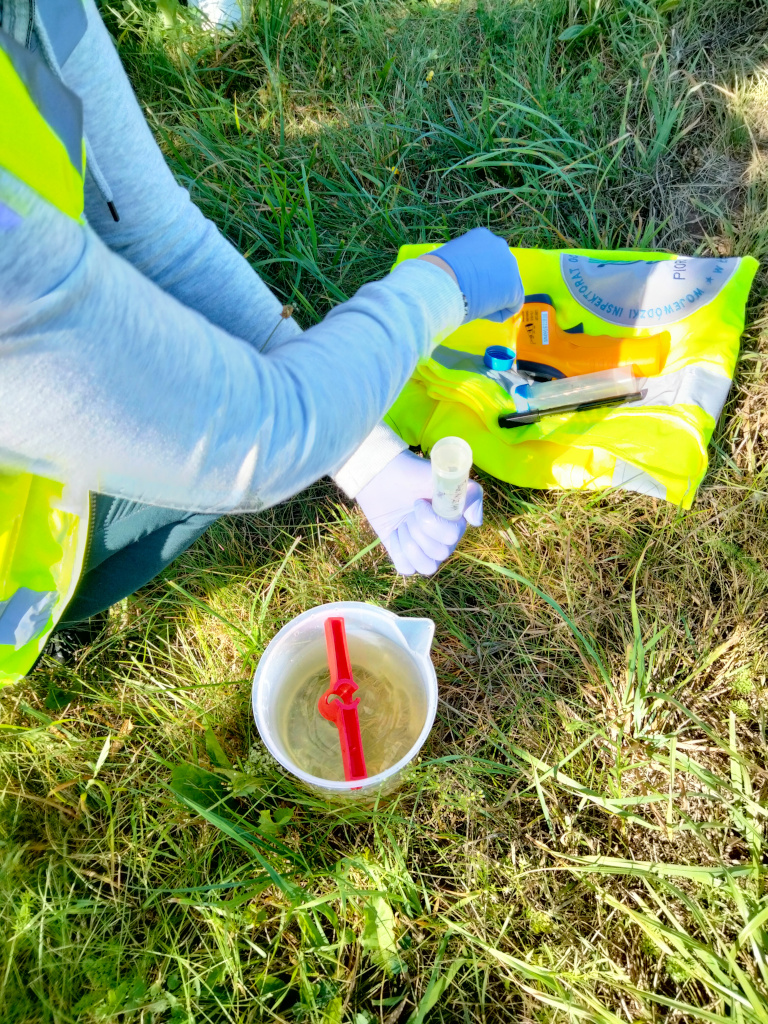 Próbobranie wody z rzeki Bzury