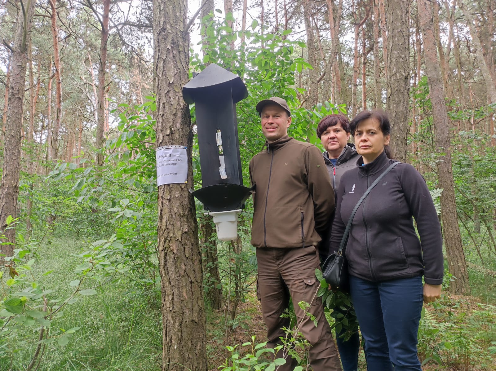 W ramach kontynuacji projektu badawczego „Opracowanie skutecznych strategii monitorowania drzewostanów sosnowych pod kątem wczesnego wykrywania kwarantannowego nicienia węgorka sosnowca w warunkach aktualnie zachodzących zmian klimatycznych” zainicjowanego w 2024 roku, inspektorzy WIORiN w Łodzi oddziału w Wieruszowie wraz z pracownikami Nadleśnictwa Przedborów dokonali 9 czerwca 2025 roku wywieszenia pułapki do odłowu żerdzianki sosnówki – wektora Bursaphelenchus xylophilus.