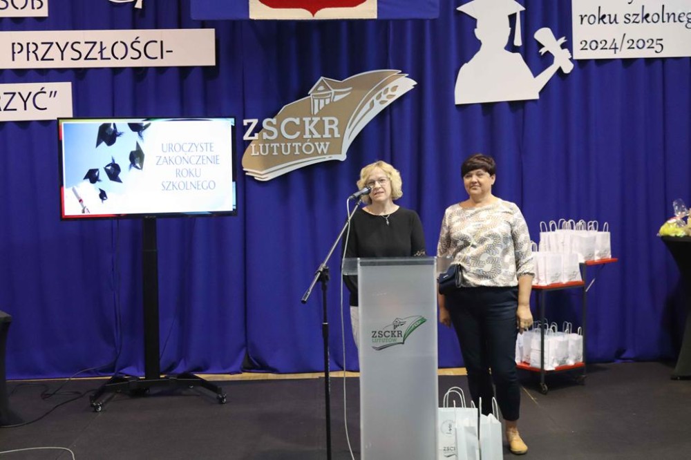 27 czerwca 2025 roku odbyła się uroczystość zakończenia roku szkolnego 2024/2025 w Zespole Szkół Centrum Kształcenia Rolniczego w Lututowie. W uroczystości udział wzięli uczniowie, dyrektorzy, nauczyciele, pracownicy administracji i obsługi, a także zaproszeni goście. Swoją obecnością zaszczycili: Tomasz Niedziałek przedstawiciel Ministerstwa Rolnictwa i Rozwoju Wsi, Barbara Dylewska – przedstawicielka Wojewódzkiego Inspektoratu Ochrony Roślin i Nasiennictwa w Łodzi, dr inż. Marka Brennenstuhla – przedstawiciel Uniwersytetu Przyrodniczego we Wrocławiu, Marek Kapica – prezes Spółdzielni Dostawców Mleka w Wieluniu, Katarzyna Marszałkowska - dyrektor firmy „Chata Walichnowska”, Agata Borek - przedstawicielka Rejonowego Banku Spółdzielczego w Lututowie, Marek Pikuła - Burmistrz Lututowa, Nina Gwiazdowska - członkini Zarządu Ochotniczej Straży Pożarnej w Lututowie oraz Izabela Gnych – przewodnicząca Rady Rodziców przy ZSCKR.