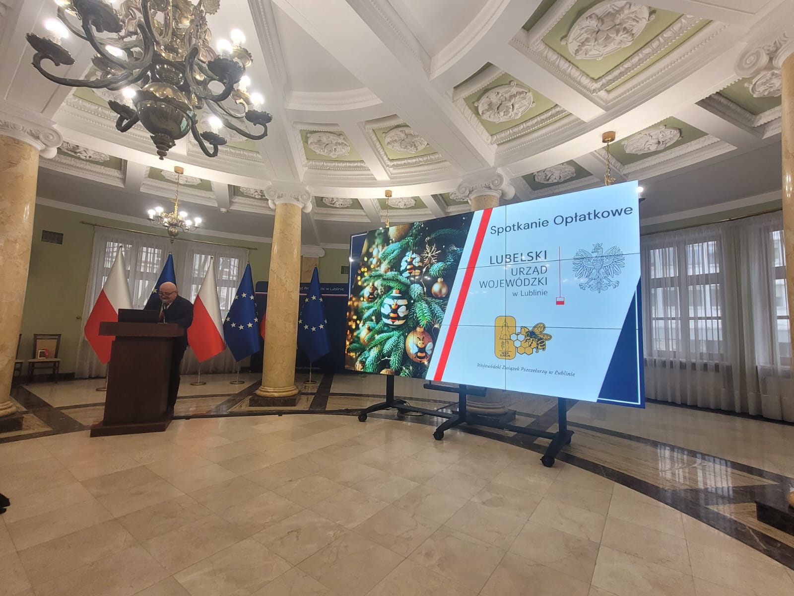 W dniu 17 grudnia br. w Lubelskim Urzędzie Wojewódzkim odbyło się tradycyjne spotkanie opłatkowe współorganizowane przez Wojewódzki Związek Pszczelarzy w Lublinie oraz Wojewodę Lubelskiego. Gospodarzem spotkania ze strony Związku Pszczelarzy był Prezes Piotr Różyński, a ze strony Urzędu Wojewódzkiego uczestniczył Pan Andrzej Maj – Wicewojewoda Lubelski. Na zaproszenie organizatorów w spotkaniu wziął udział Pan Piotr Włodarczyk – Lubelski Wojewódzki Inspektor Ochrony Roślin i Nasiennictwa w Lublinie.