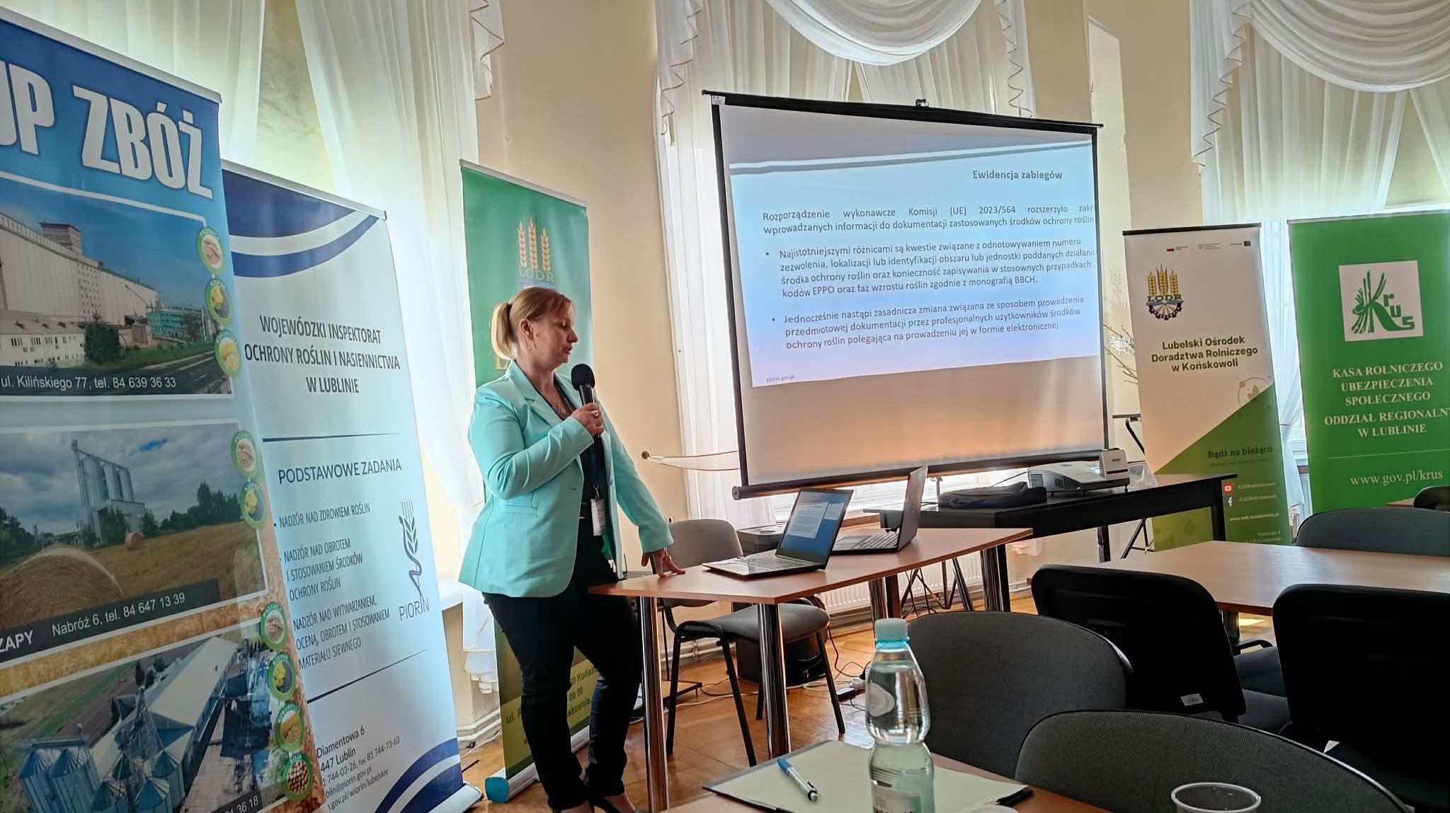 Inspekcję reprezentowały Pani Marta Zawiślak - Kierownik Oddziału w Zamościu oraz Pani Anna Sadłowska - Specjalista, które przedstawiły zadania realizowane przez WIORiN, ze szczególnym uwzględnieniem nowych zasad zakupu środków ochrony roślin, obowiązujących od 6 marca 2026 r., w tym wymaganych dokumentów oraz zasad nabywania środków przeznaczonych dla użytkowników profesjonalnych.