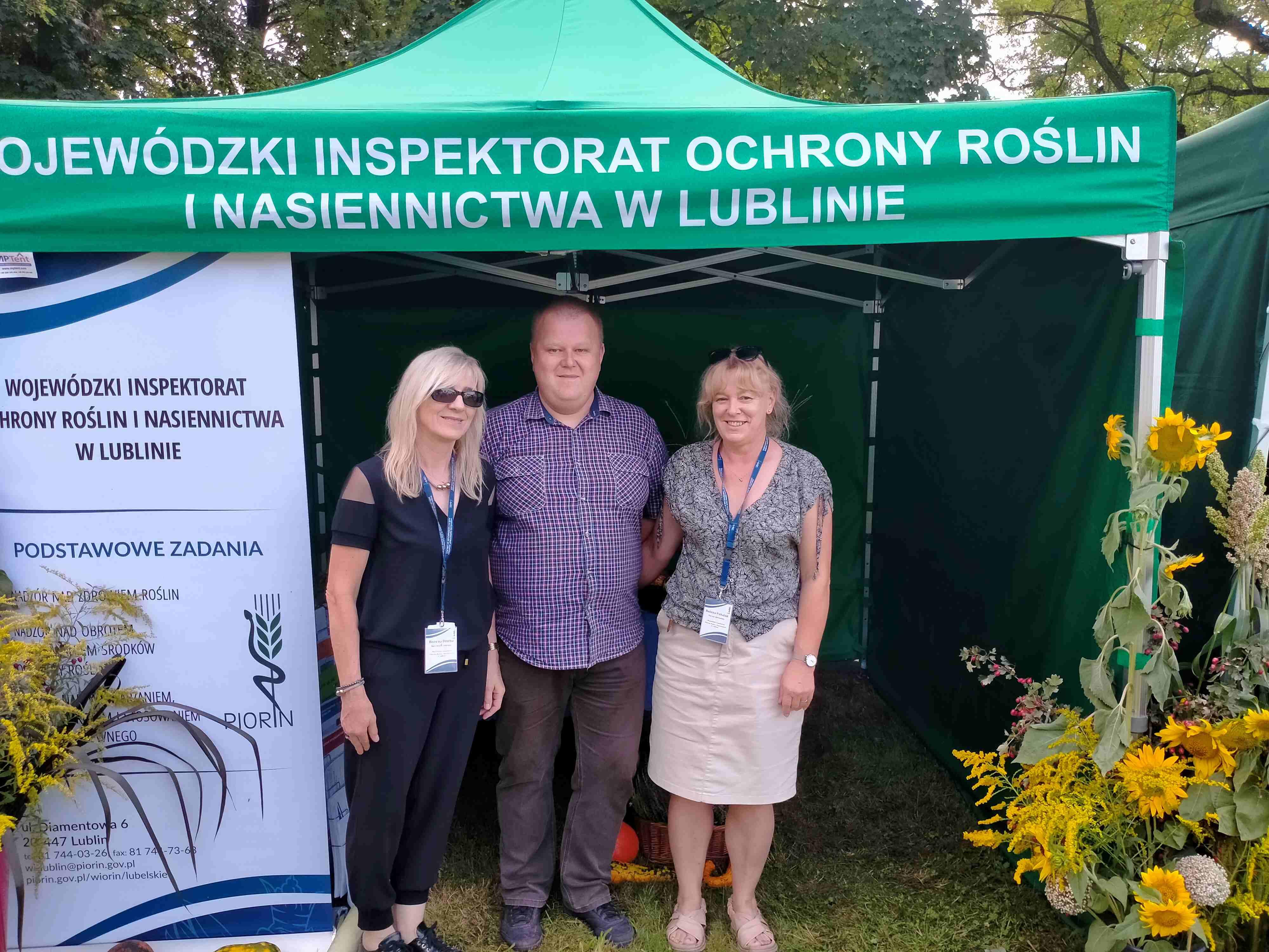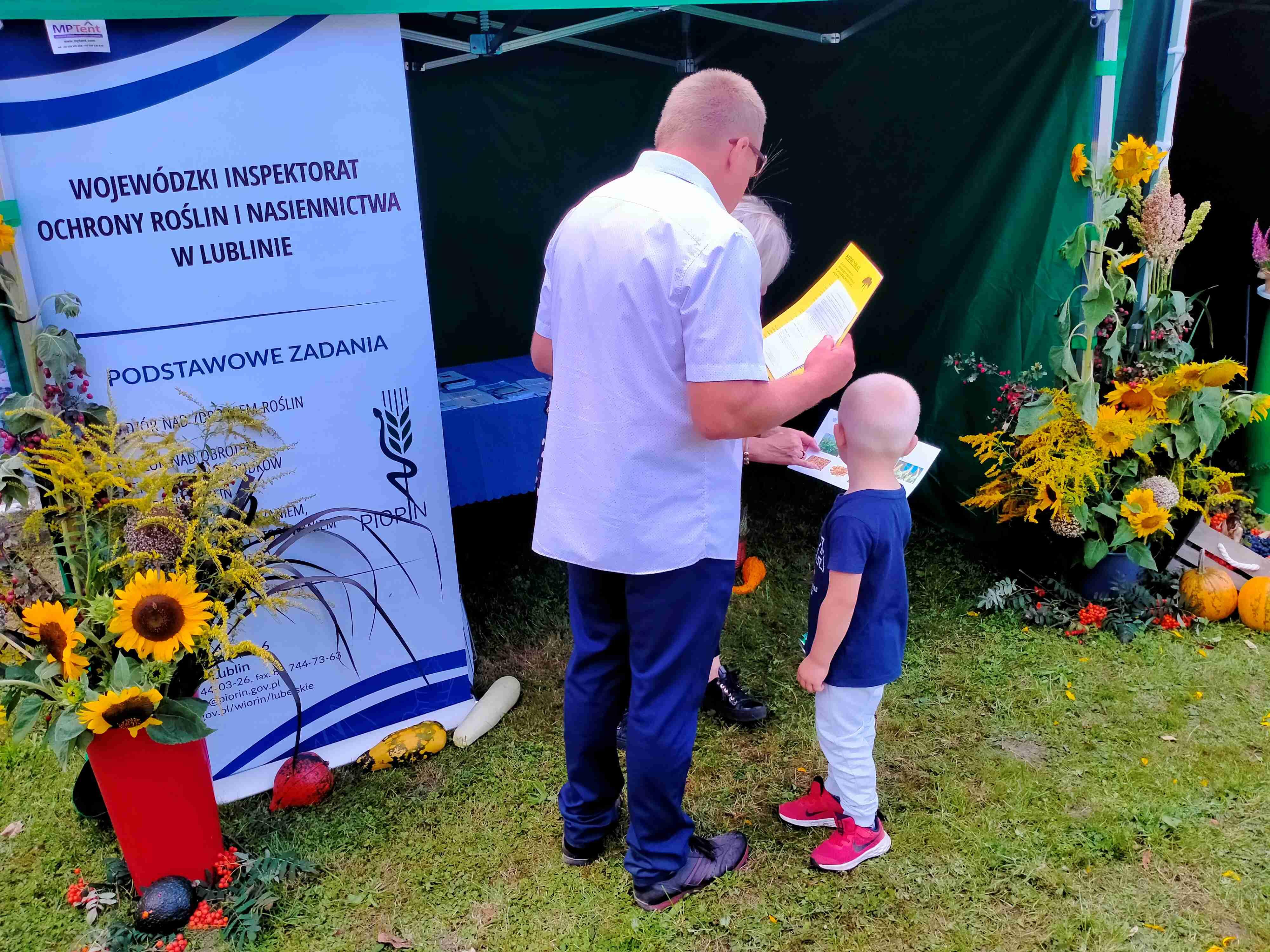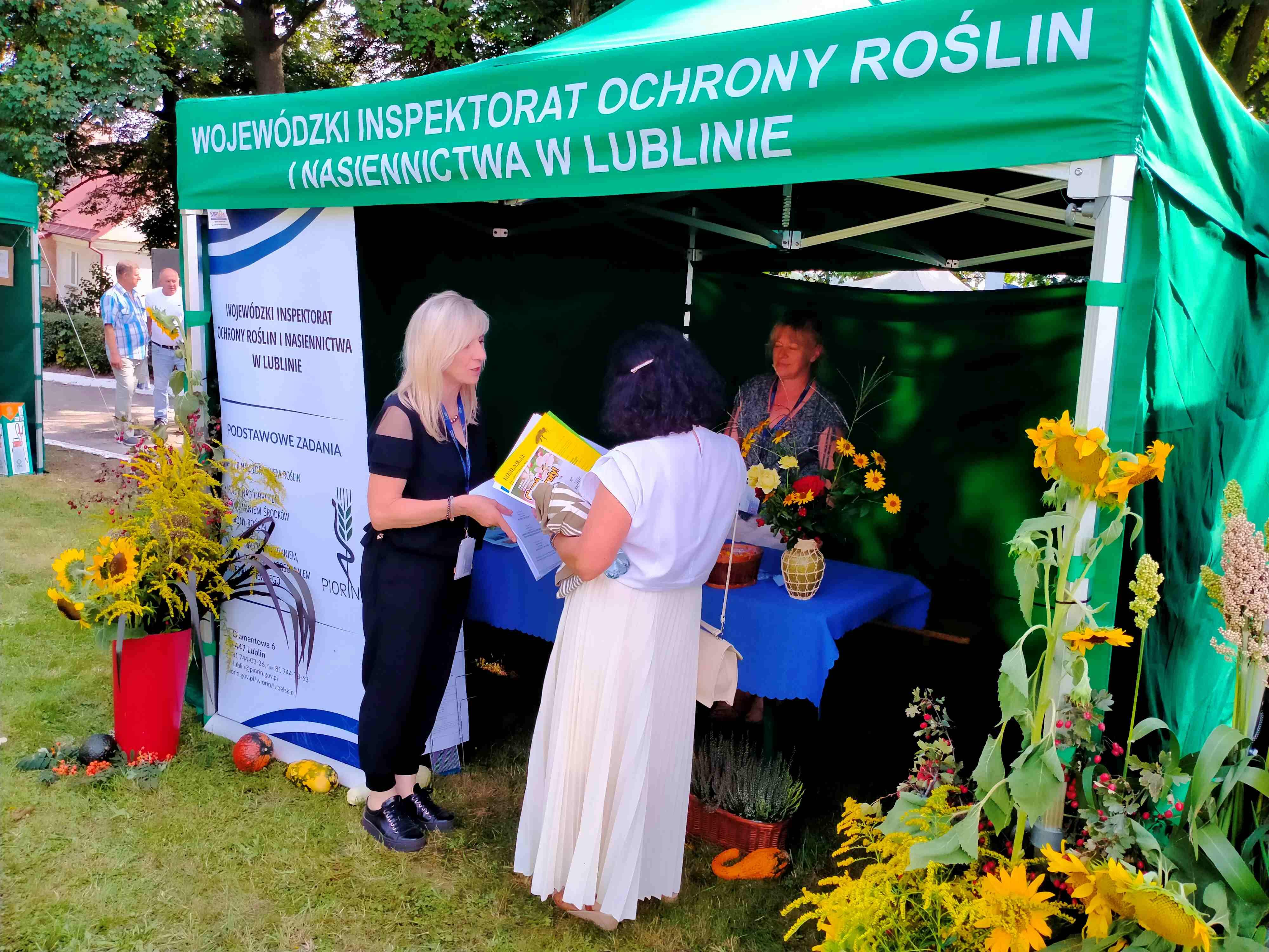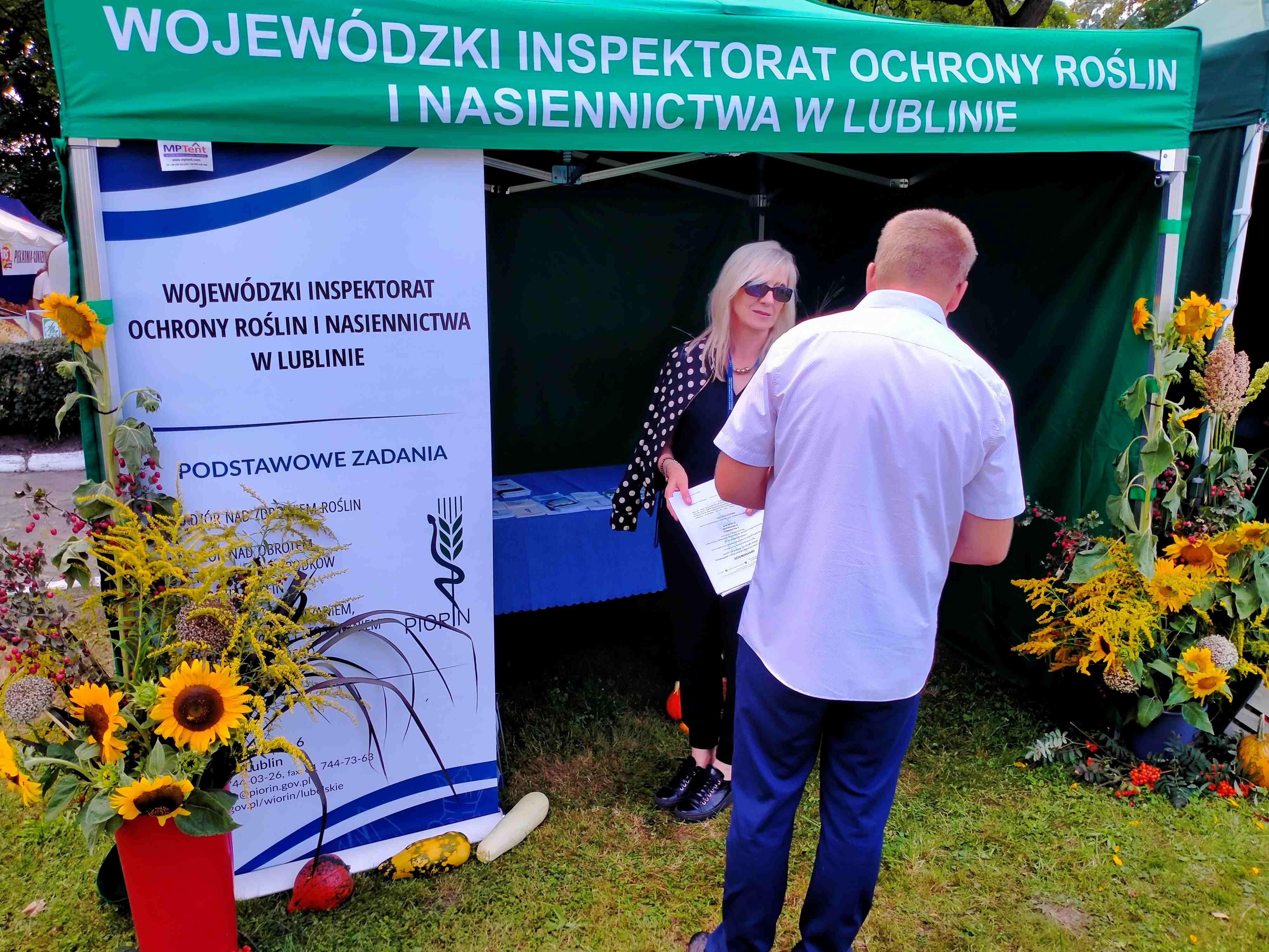 Inspektorzy przygotowali stoisko informacyjno – promocyjne, gdzie producenci, rolnicy oraz pozostali uczestnicy uroczystości mogli zapoznać się ze specyfiką działalności Państwowej Inspekcji Ochrony Roślin i Nasiennictwa. Zainteresowani odwiedzający nasze stoisko, mieli możliwość uzyskania porad z zakresu zdrowia roślin, nasiennictwa oraz zasad stosowania środków ochrony roślin, mogli także pobrać ulotki i komunikaty dotyczące wymienionych zagadnień.