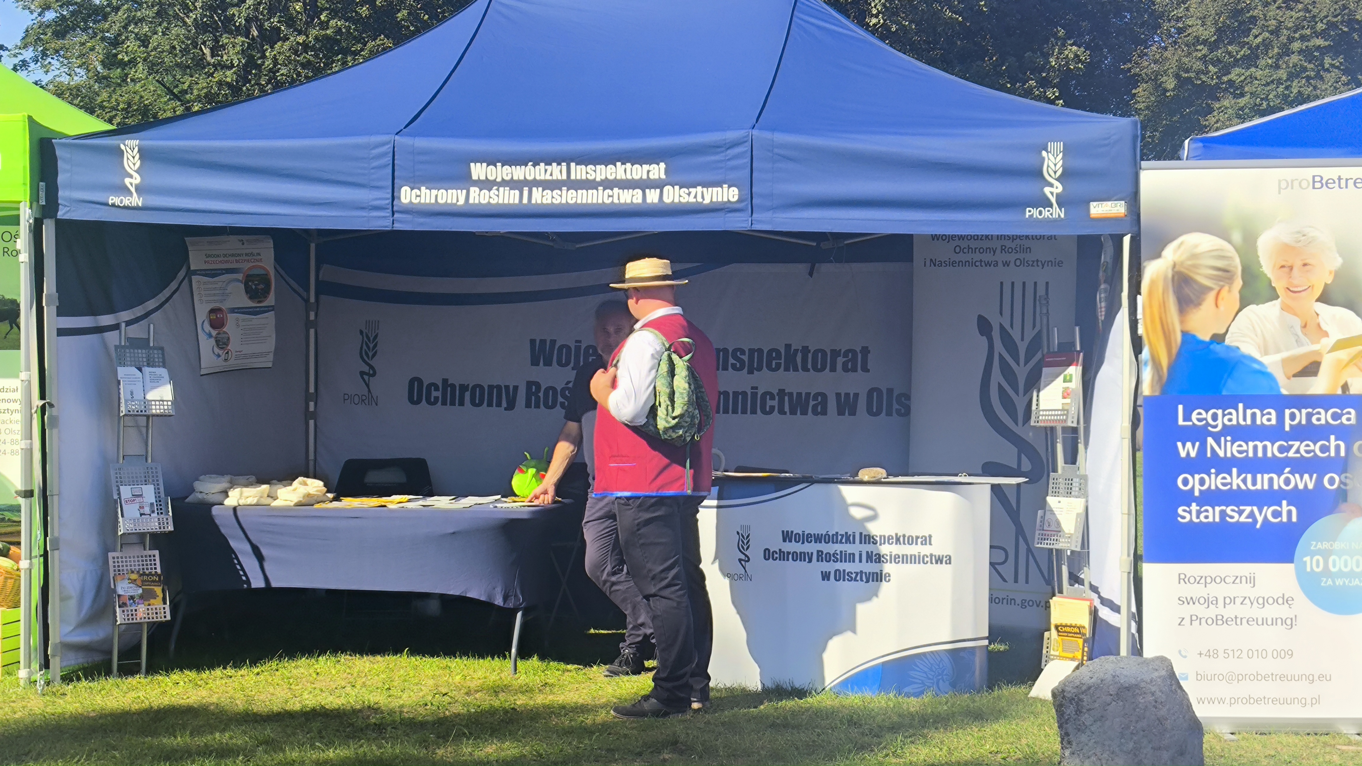 Wśród instytucji wspierających rolnictwo obecny był również Wojewódzki Inspektorat Ochrony Roślin i Nasiennictwa w Olsztynie. Inspektorzy przygotowali stoisko informacyjne, które cieszyło się dużym zainteresowaniem odwiedzających. Goście mogli uzyskać informacje na temat zadań i kompetencji WIORiN, w tym m.in. w zakresie zdrowia roślin, jakości materiału siewnego czy zasad bezpiecznego stosowania środków ochrony roślin. Rozdawaliśmy materiały informacyjne, a pracownicy odpowiadali na liczne pytania odwiedzających dotyczące aktualnych regulacji prawnych.