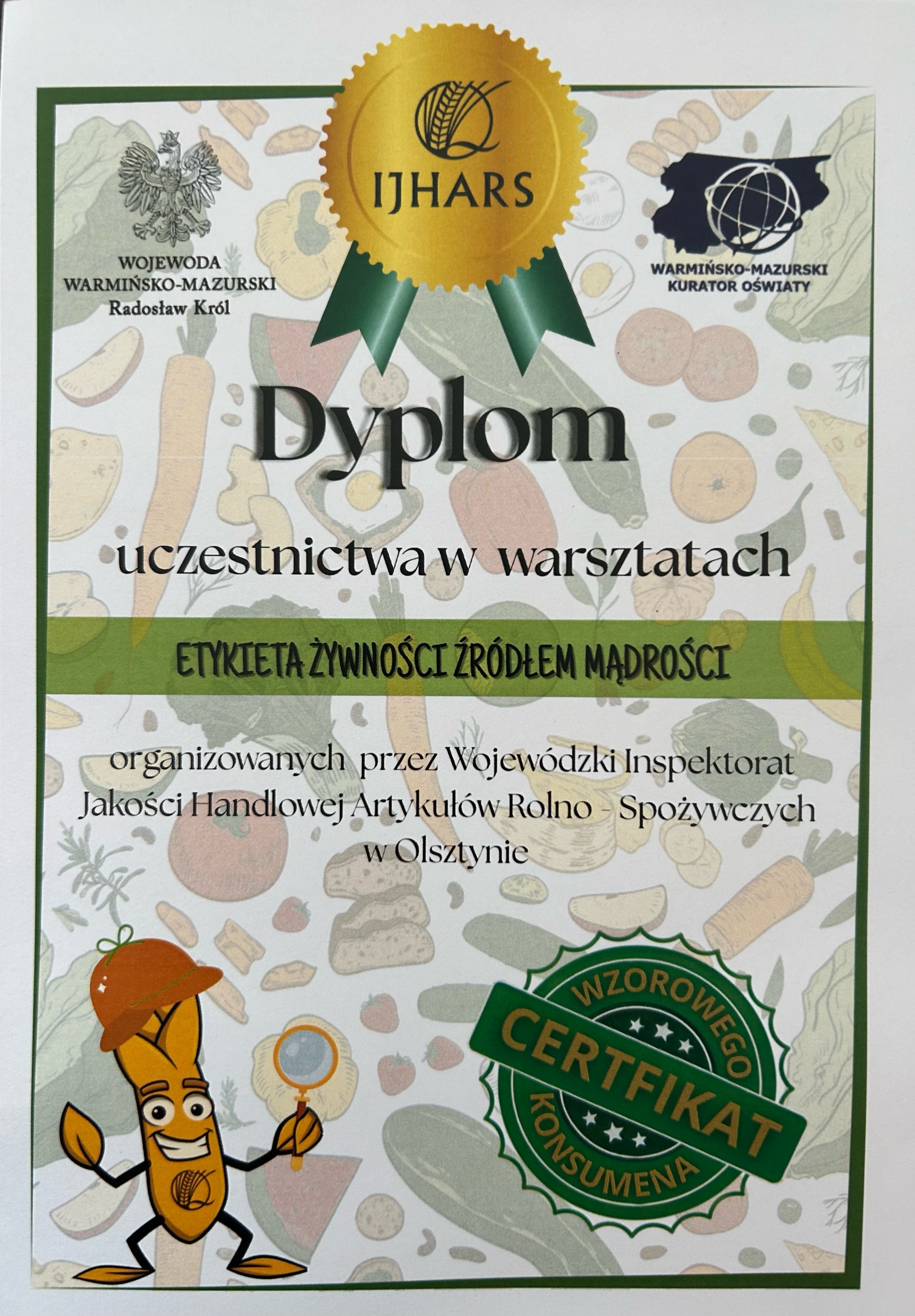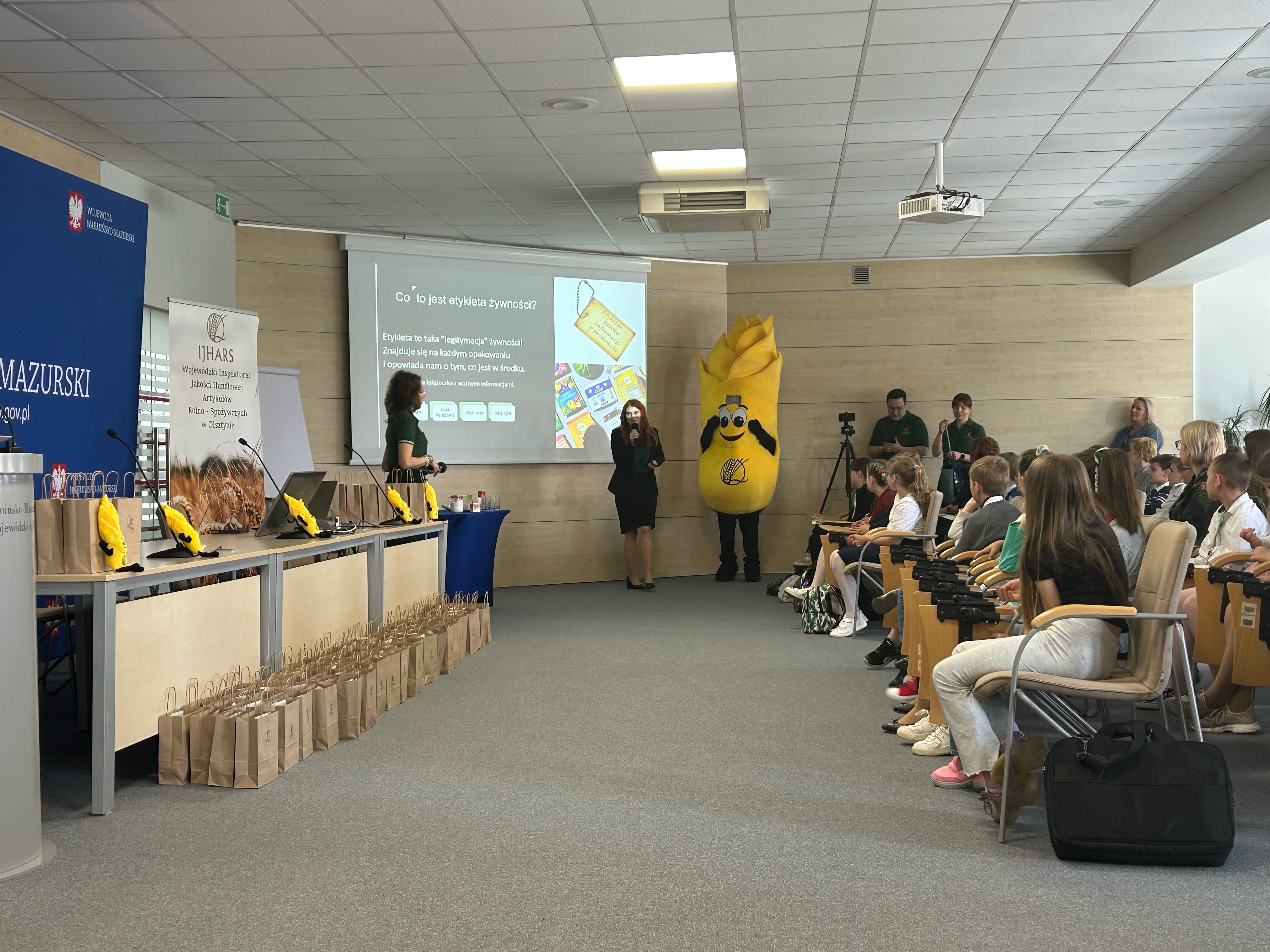 Następnie pracownicy Wojewódzkiego Inspektoratu Jakości Handlowej Artykułów RolnoSpożywczych w Olsztynie przeprowadzili lekcję inauguracyjną. Zajęcia miały na celu uświadomienie dzieciom, jak istotne jest umiejętne odczytywanie informacji zawartych na etykietach produktów spożywczych i podejmowanie świadomych decyzji zakupowych.