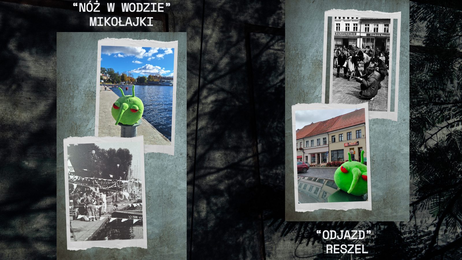- Mikołajki – akcja filmu „Nóż w wodzie” odbywa się na jeziorze mikołajskim, gdzie główni bohaterowie zabierają młodego autostopowicza na swój jacht, wpuszczając intruza do swojego uporządkowanego życia. Zadaniem Pesty jest przypomnienie mieszkańcom naszego regionu jak ważne jest zdrowie roślin. Szczególnie w okresie wakacyjnym, kiedy sami chętnie podróżujemy i nie zastanawiamy się jakie rośliny możemy ze sobą przewozić. Zapominamy, że wraz z nimi z urlopu możemy przywieźć „pasażera na gapę” zagrażającego naszemu ekosystemowi.