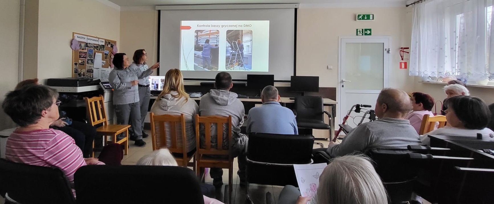 Spotkanie odbyło się w miłej i przyjaznej atmosferze. Uczestnicy z ciekawością słuchali, następnie oglądali próbki drewna z żerowiskami i zadawali zaskakujące pytania np. co oznacza wąż w logo inspekcji?