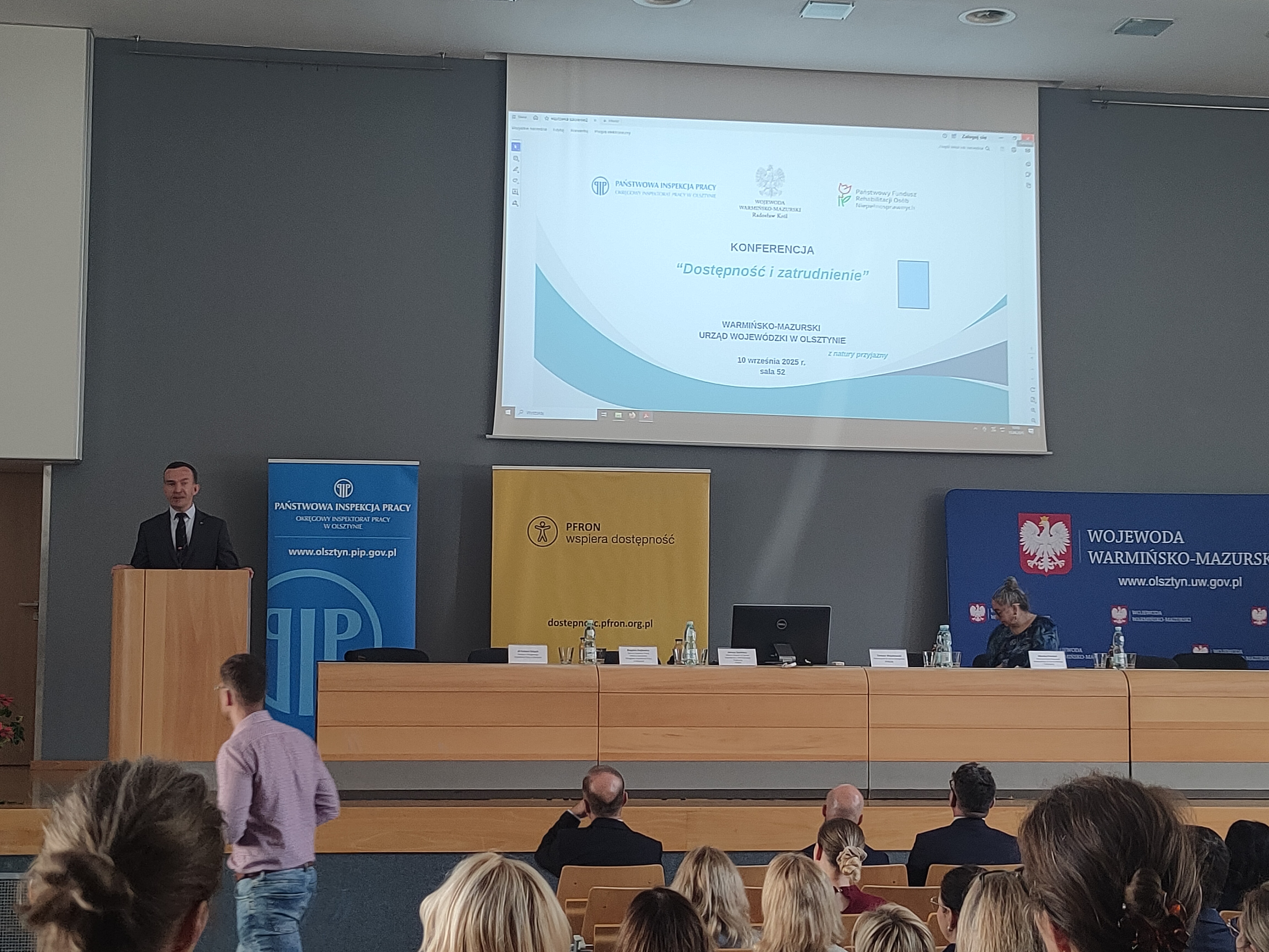 10 września 2025 r. w Warmińsko-Mazurskim Urzędzie Wojewódzkim w Olsztynie odbyła się konferencja pt. „Dostępność i zatrudnienie”, zorganizowana przez Okręgowy Inspektorat Pracy w Olsztynie we współpracy z Wojewodą Warmińsko-Mazurskim oraz Oddziałem Warmińsko-Mazurskim Państwowego Funduszu Rehabilitacji Osób Niepełnosprawnych.