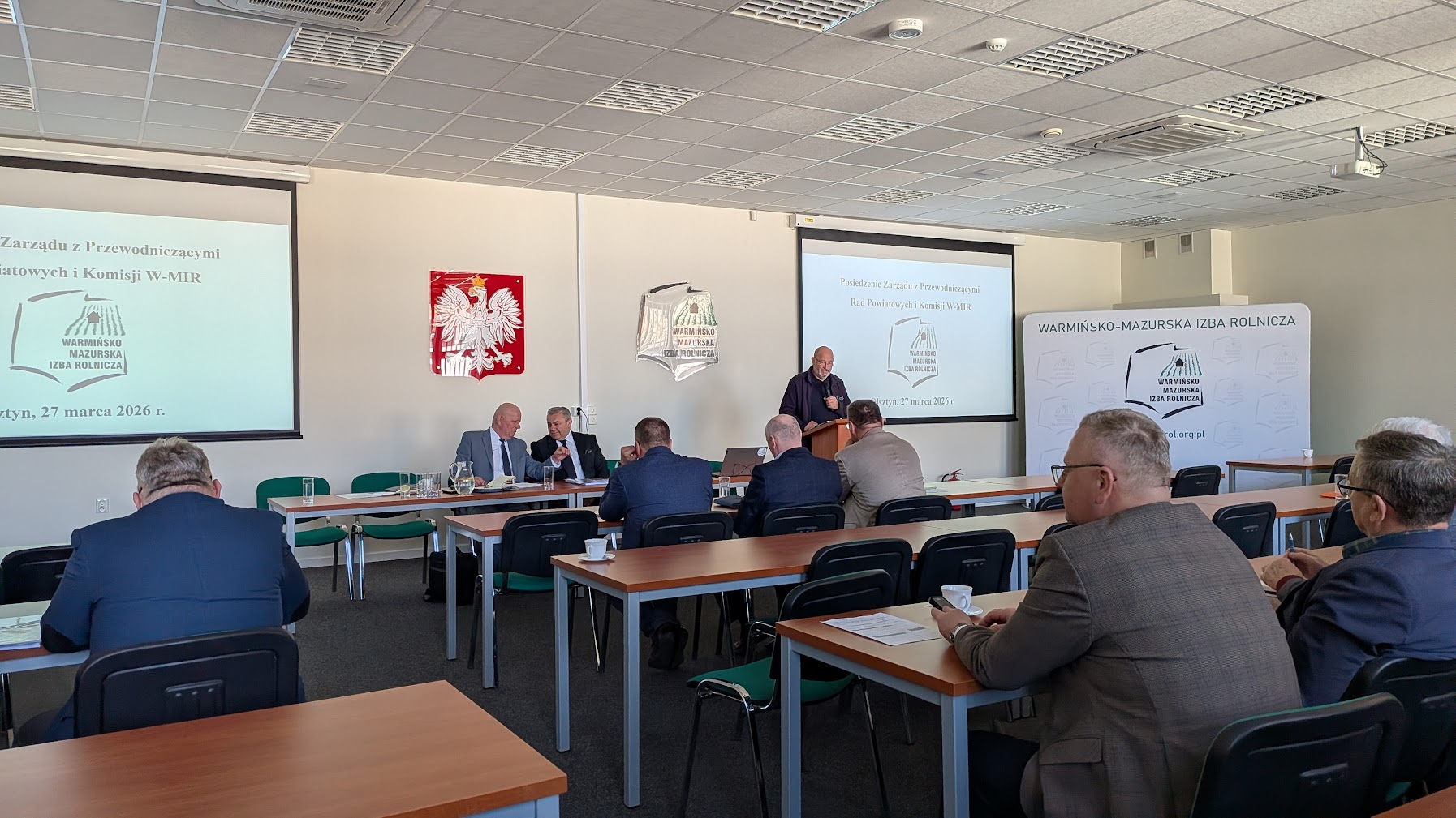 27 marca, w sali konferencyjnej Warmińsko-Mazurskiej Izby Rolniczej przy ul. Towarowej 1 w Olsztynie, odbyło się posiedzenie Zarządu z Przewodniczącymi Rad Powiatowych Warmińsko-Mazurskiej Izby Rolniczej oraz Komisji.