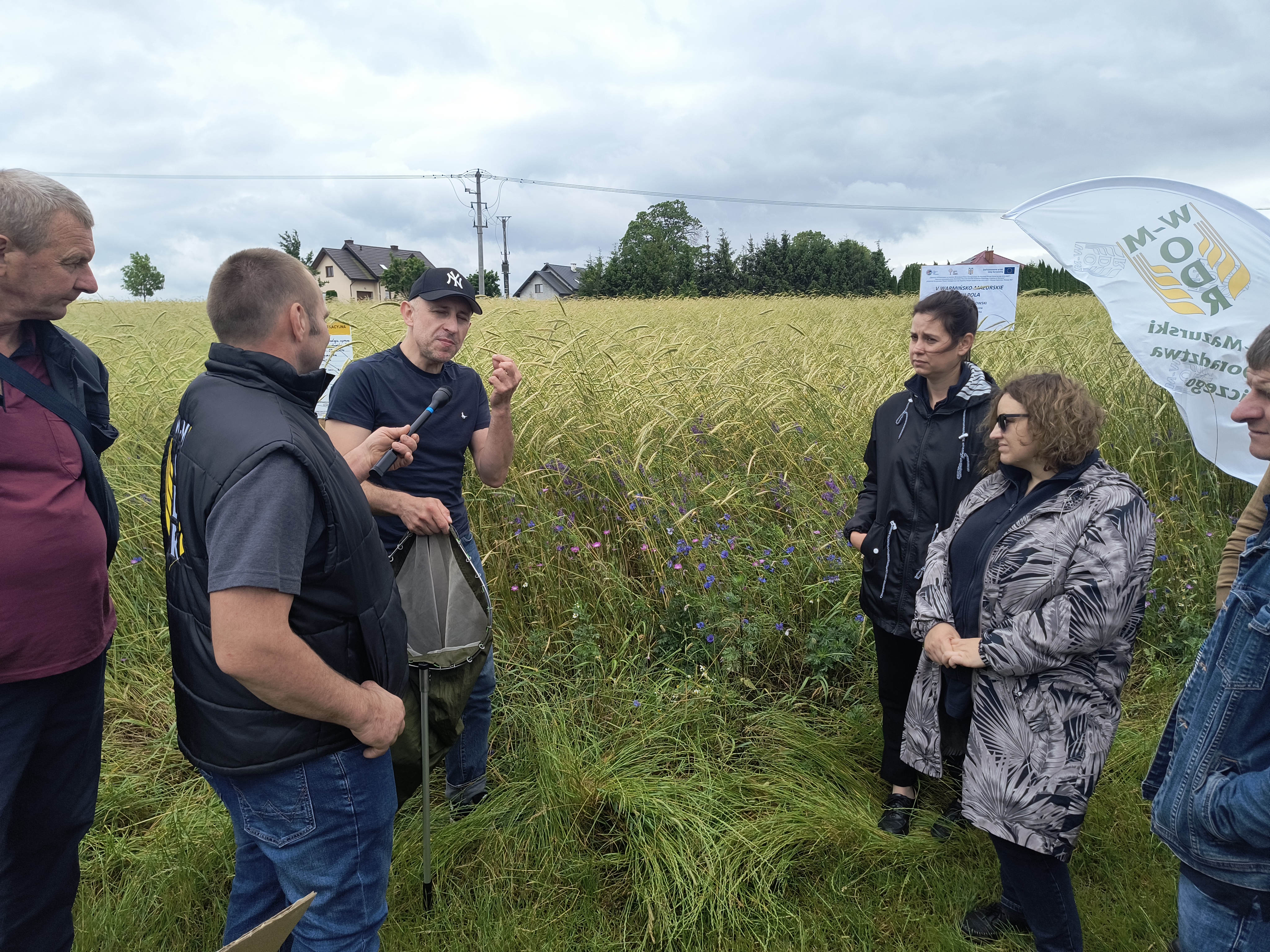 Podczas spotkania uczestnicy mieli możliwość brać udział w wykładach przeprowadzonych na poletkach demonstracyjnych żyta ozimego w uprawie konwencjonalnej, żyta ekologicznego i pszenżyta ozimego, które poprowadził dr hab. Paweł Bereś opowiadając o owadach żerujących na danych uprawach, ich biologii, zwalczaniu, jak również o pozytywnych stronach ich występowania na uprawach rolnych.