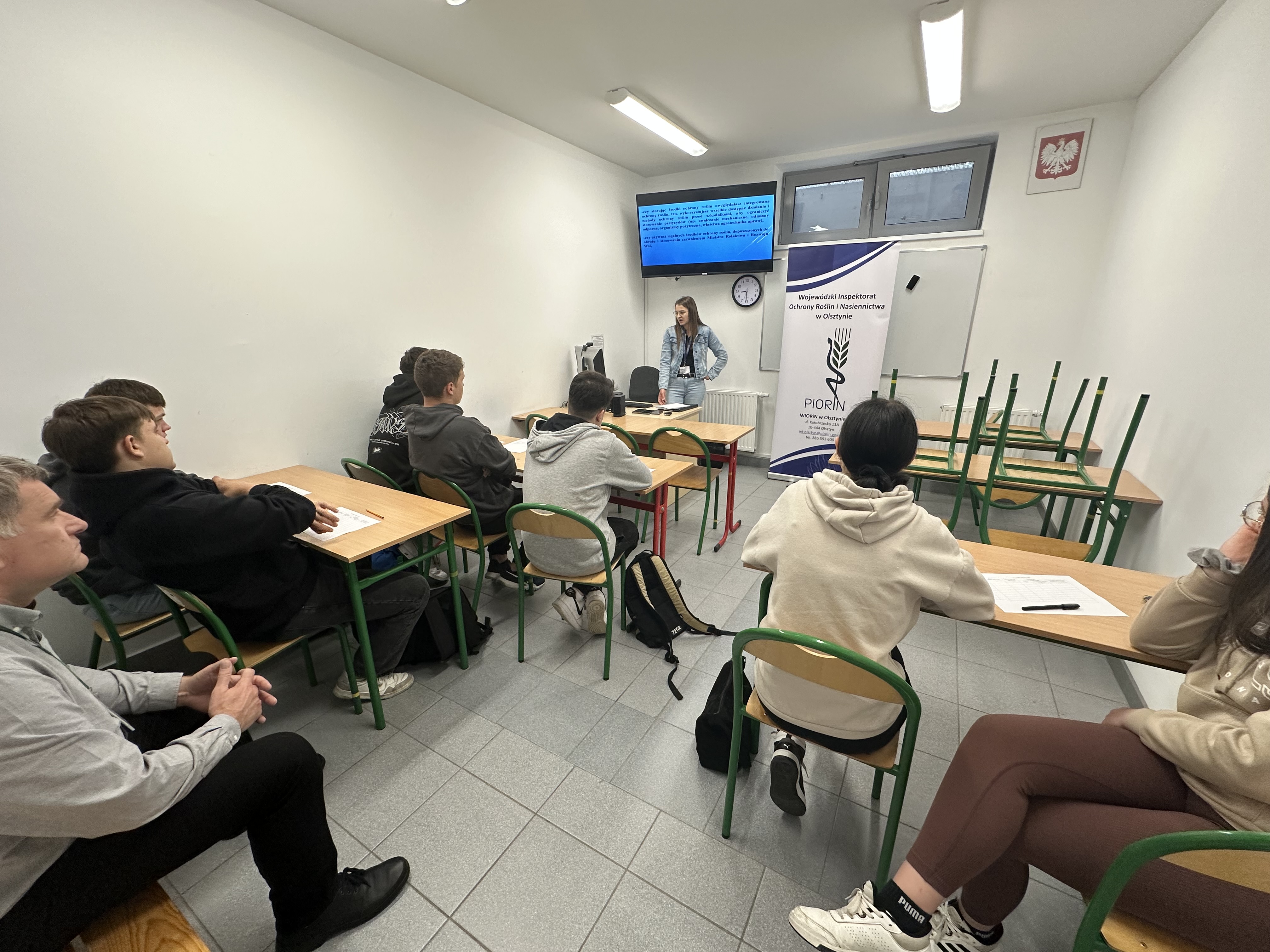 22 maja 2025 roku inspektorzy Wojewódzkiego Inspektoratu Ochrony Roślin i Nasiennictwa w Olsztynie Oddziału powiatu iławskiego i nowomiejskiego w Nowym Mieście Lubawskim odwiedzili uczniów Technikum Rolniczego Zespołu Szkół Zawodowych w Kurzętniku.