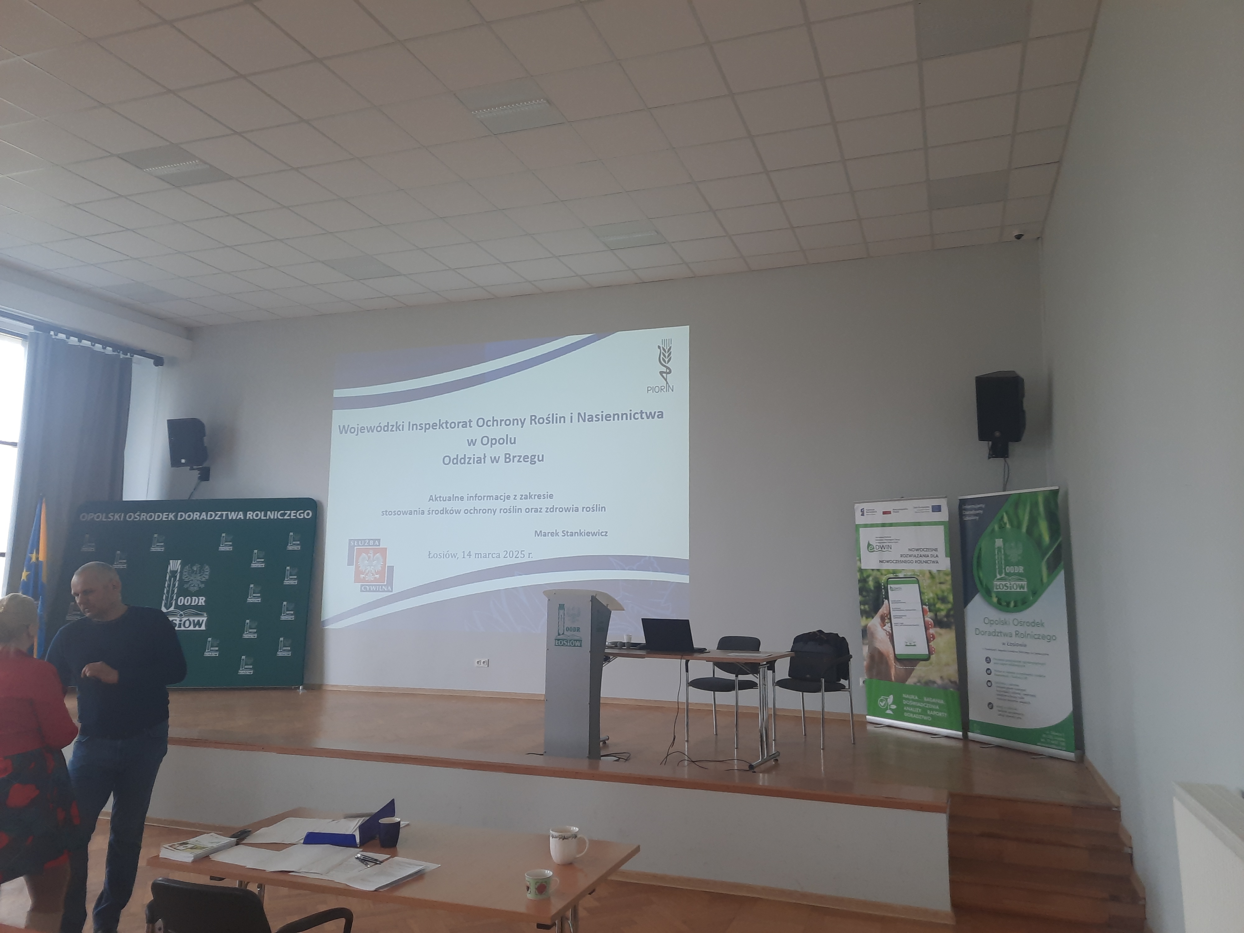 W dniu 14.03.2025 r. w siedzibie Opolskiego Ośrodka Doradztwa Rolniczego w Łosiowie odbyło się szkolenie uzupełniające w zakresie stosowania środków ochrony roślin sprzętem naziemnym, z wyłączeniem sprzętu montowanego na pojazdach szynowych oraz innego sprzętu stosowanego w kolejnictwie. W szkoleniu wzięli udział użytkownicy profesjonalni środków ochrony roślin z terenu powiatu brzeskiego. Dzięki uprzejmości OODR w Łosiowie pracownik WIORiN w Opolu Oddział w Brzegu Pan Marek Stankiewicz przestawił prezentację dotyczącą aktualnych informacji w zakresie stosowania środków ochrony roślin oraz zdrowia roślin.
