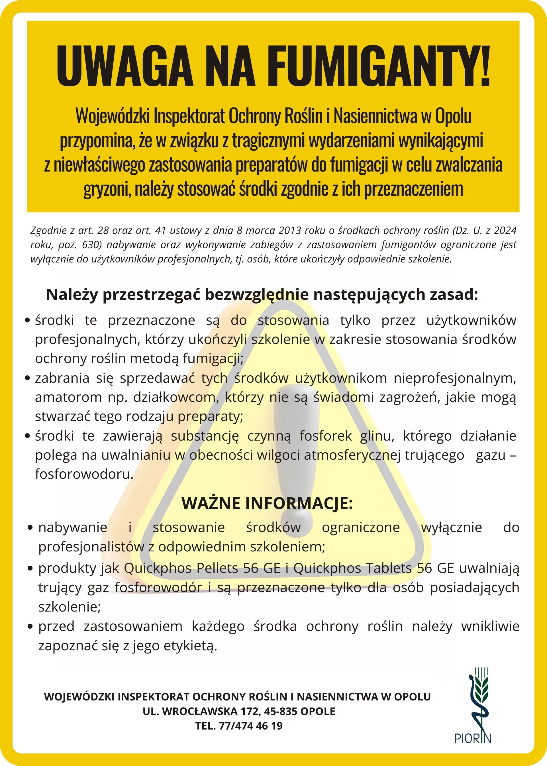 Zakup i użycie fumigantów przez amatorów np. działkowiczów jest prawnie zabronione!