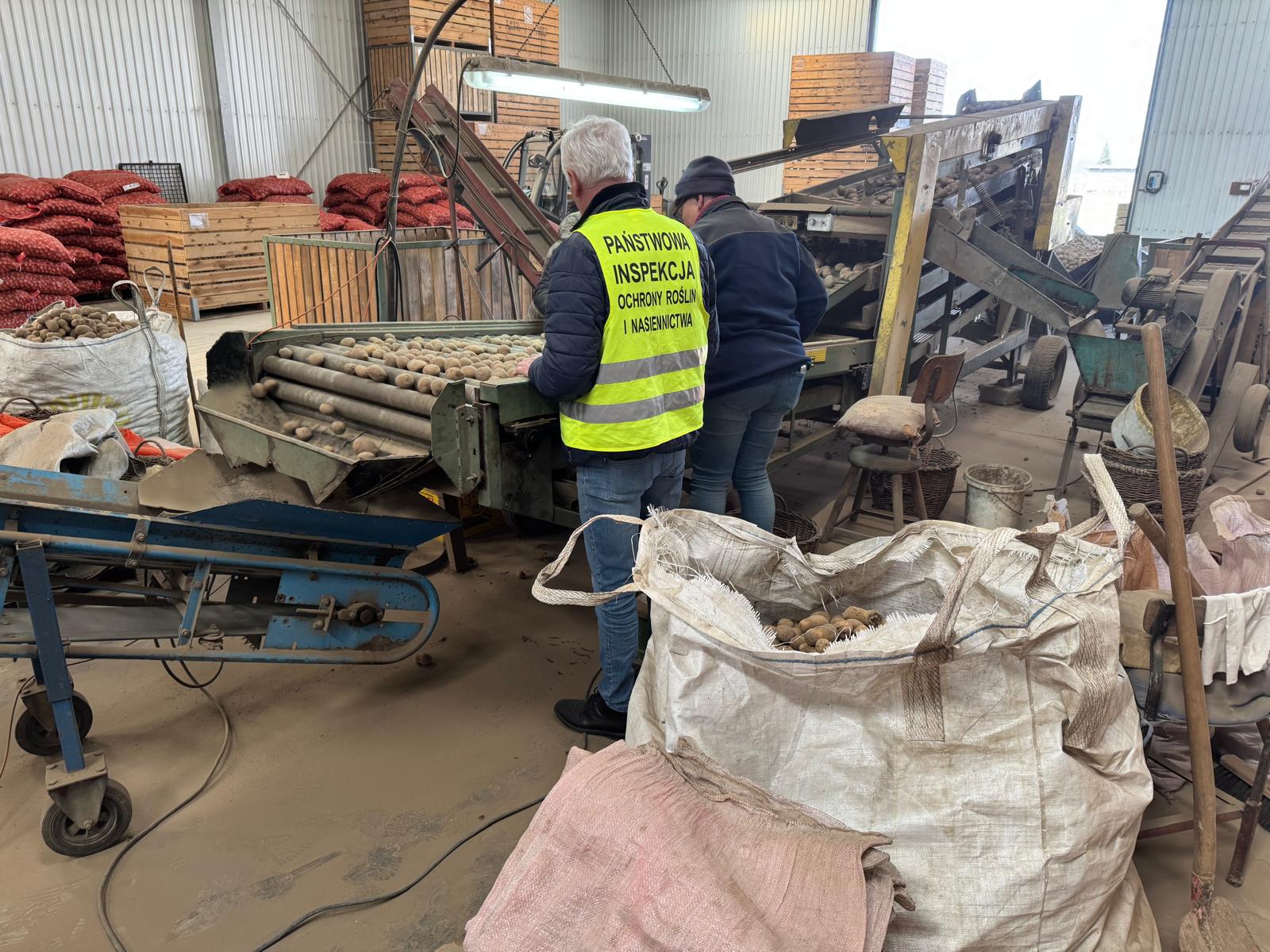 Ocenę cech zewnętrznych wykonano w magazynie wyposażonym w wagę, kosze, stół sortowniczy, termometr oraz pełną dokumentację dotyczącą ocenianej partii sadzeniaków ziemniaka.