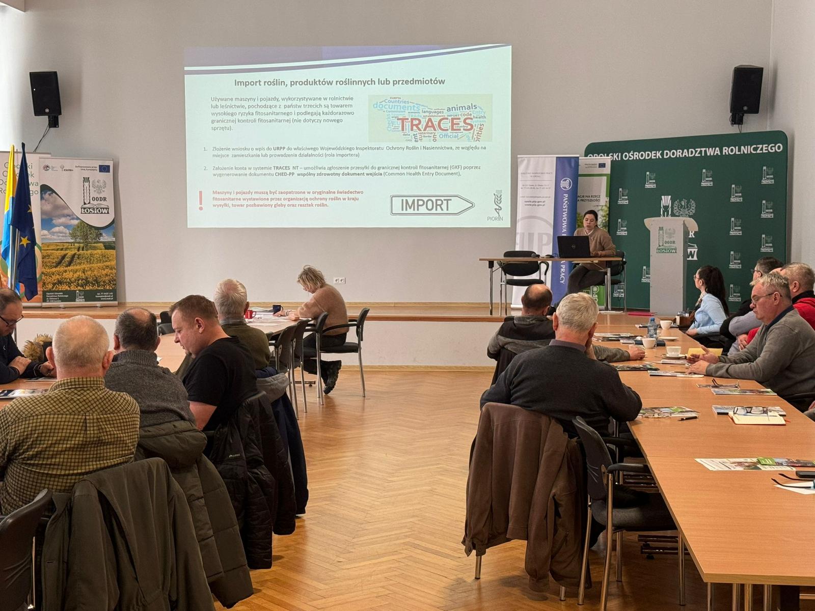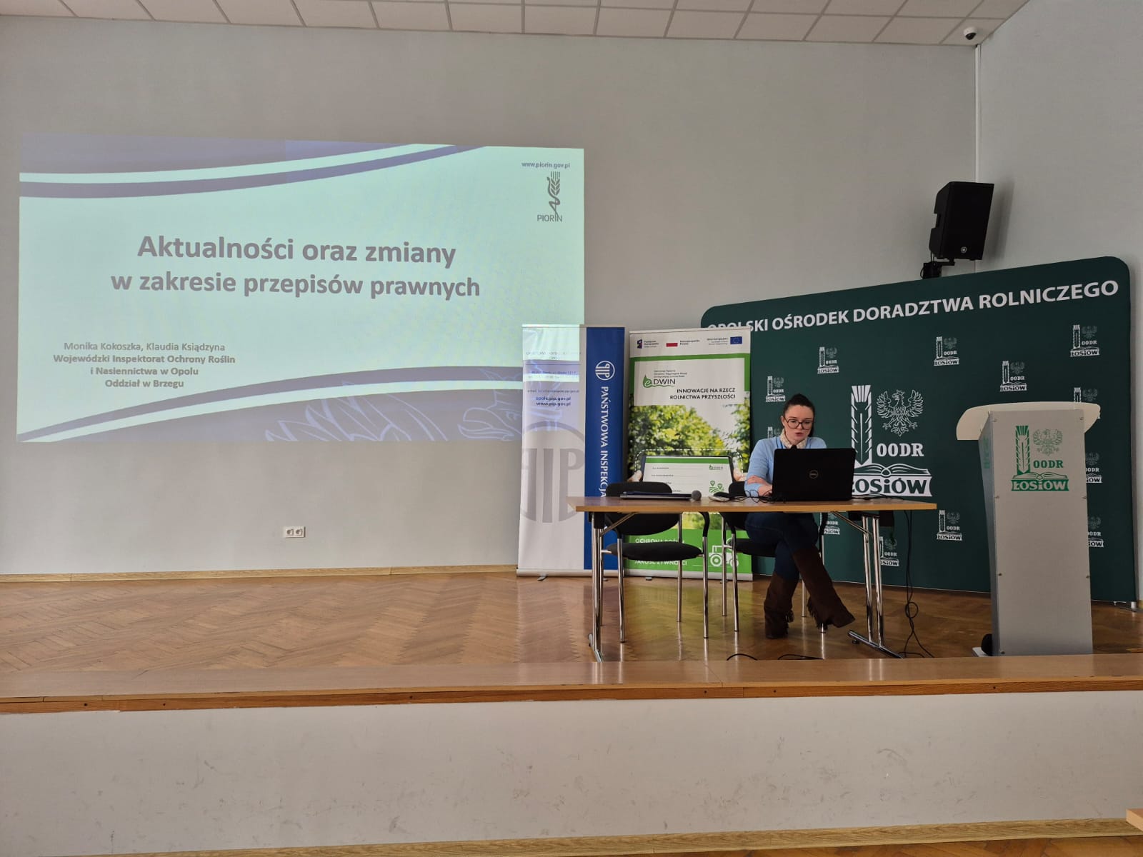 W ramach prowadzenia kampanii informacyjno - edukacyjnej dotyczącej zmian w przepisach prawnych w zakresie obrotu środkami ochrony roślin 17 lutego 2026 roku pracownicy Wojewódzkiego Inspektoratu Ochrony Roślin i Nasiennictwa w Opolu, Oddziału w Brzegu - Pani Klaudia Ksiądzyna oraz Pani Monika Kokoszka, spotkały się z rolnikami w siedzibie Opolskiego Ośrodka Doradztwa Rolniczego w Łosiowie.