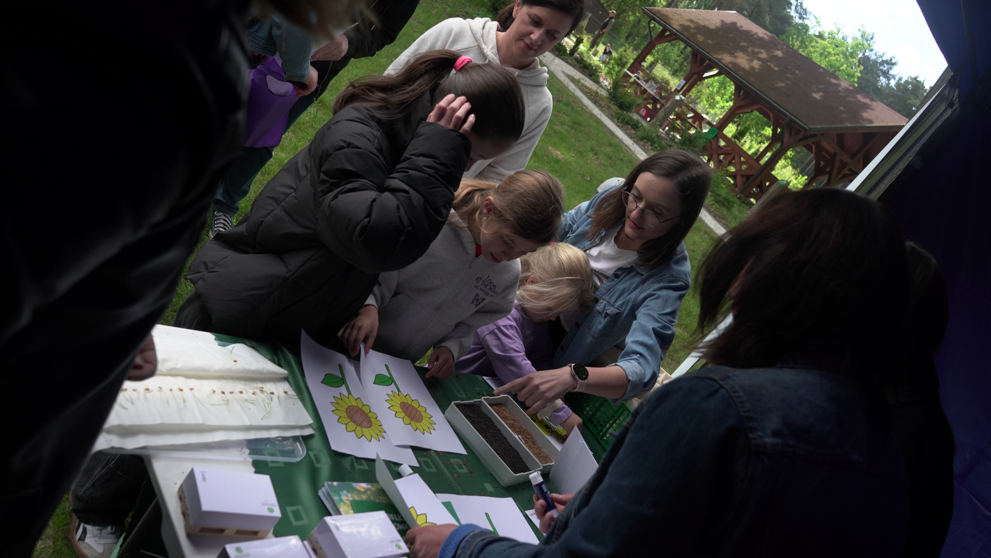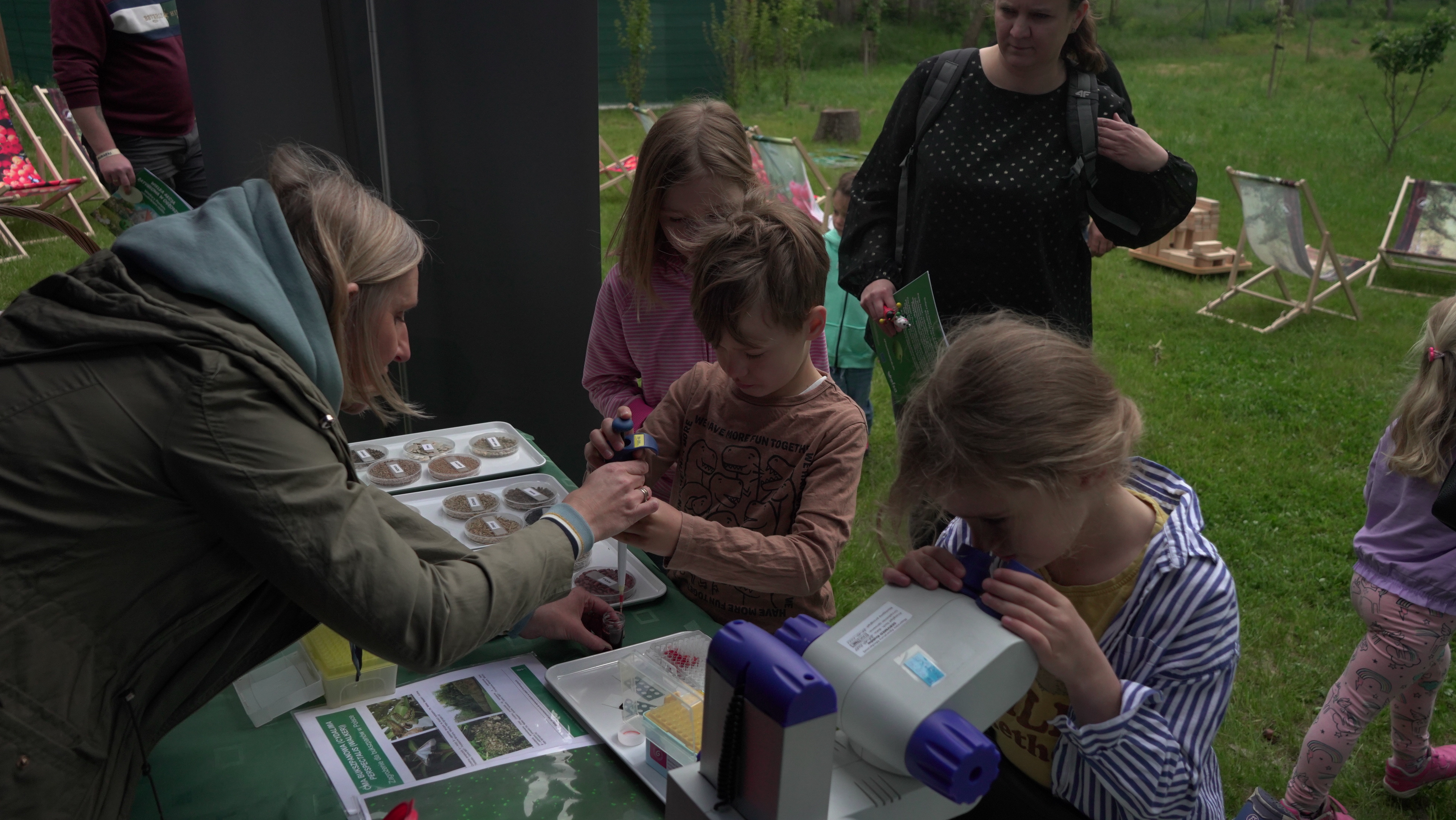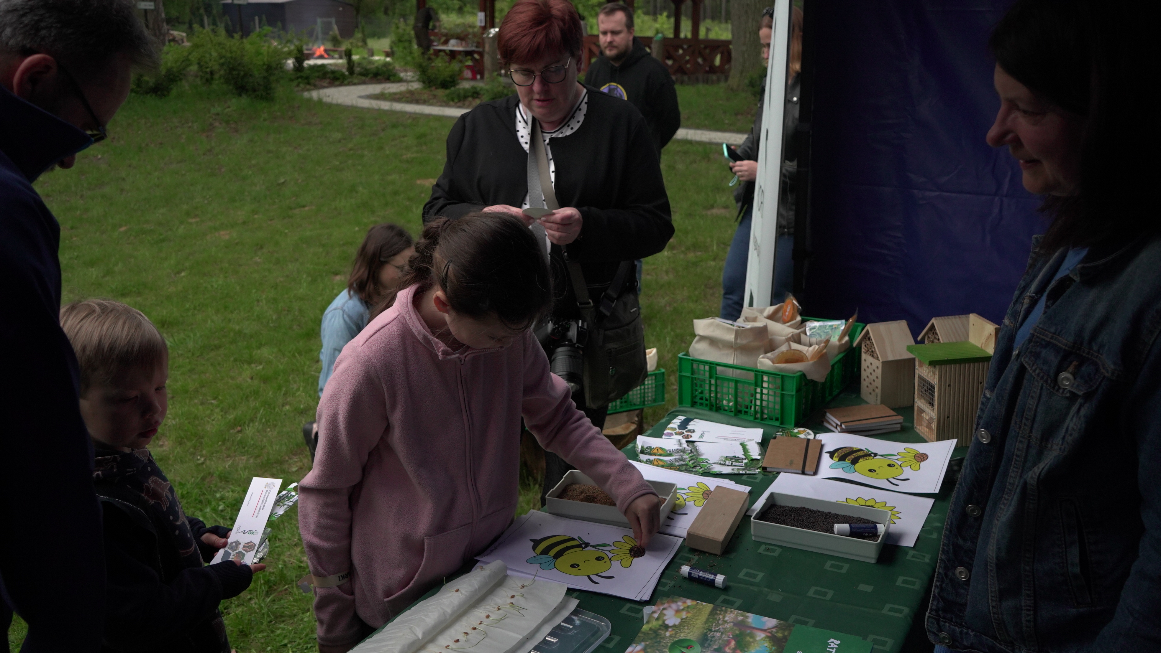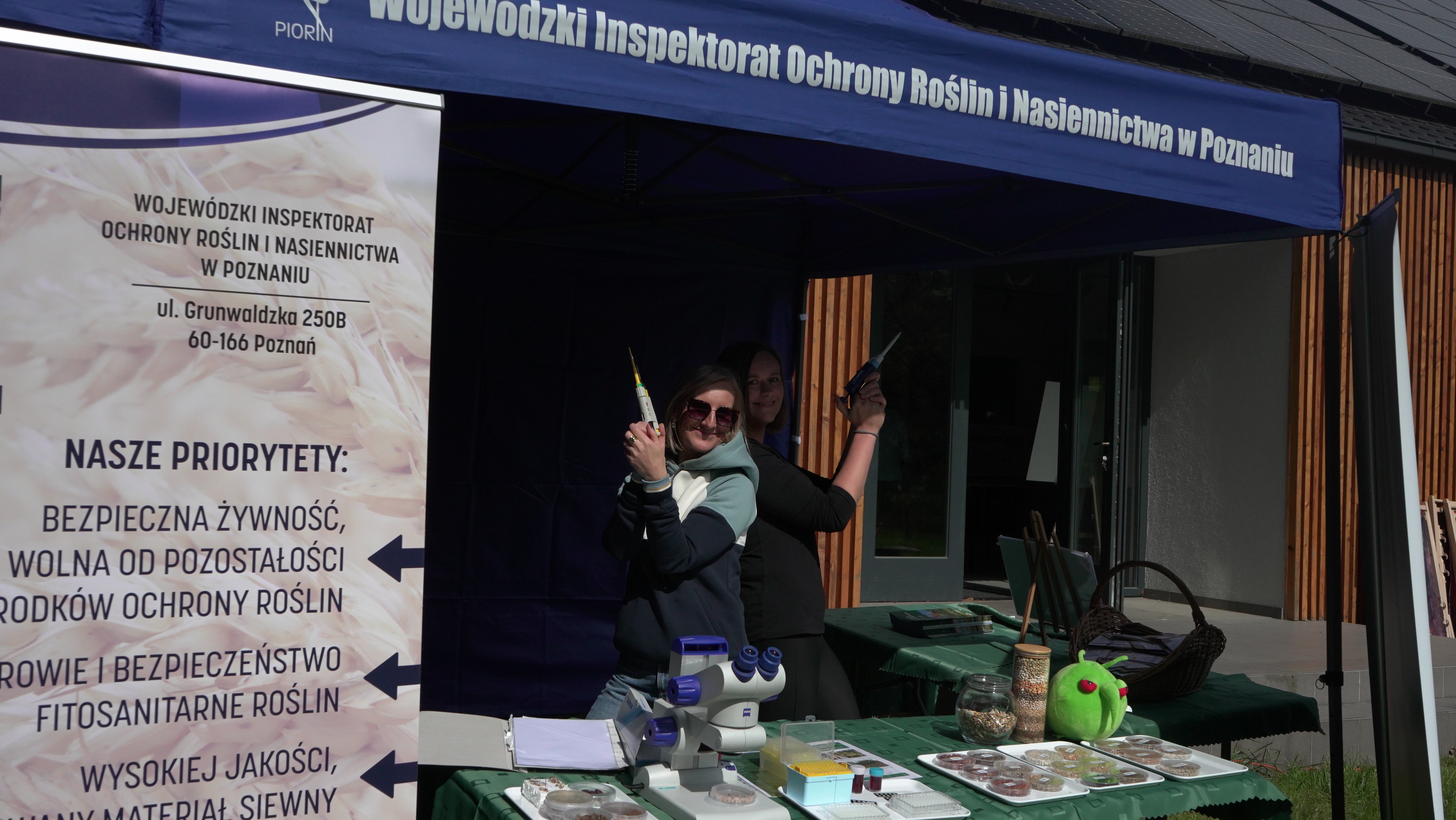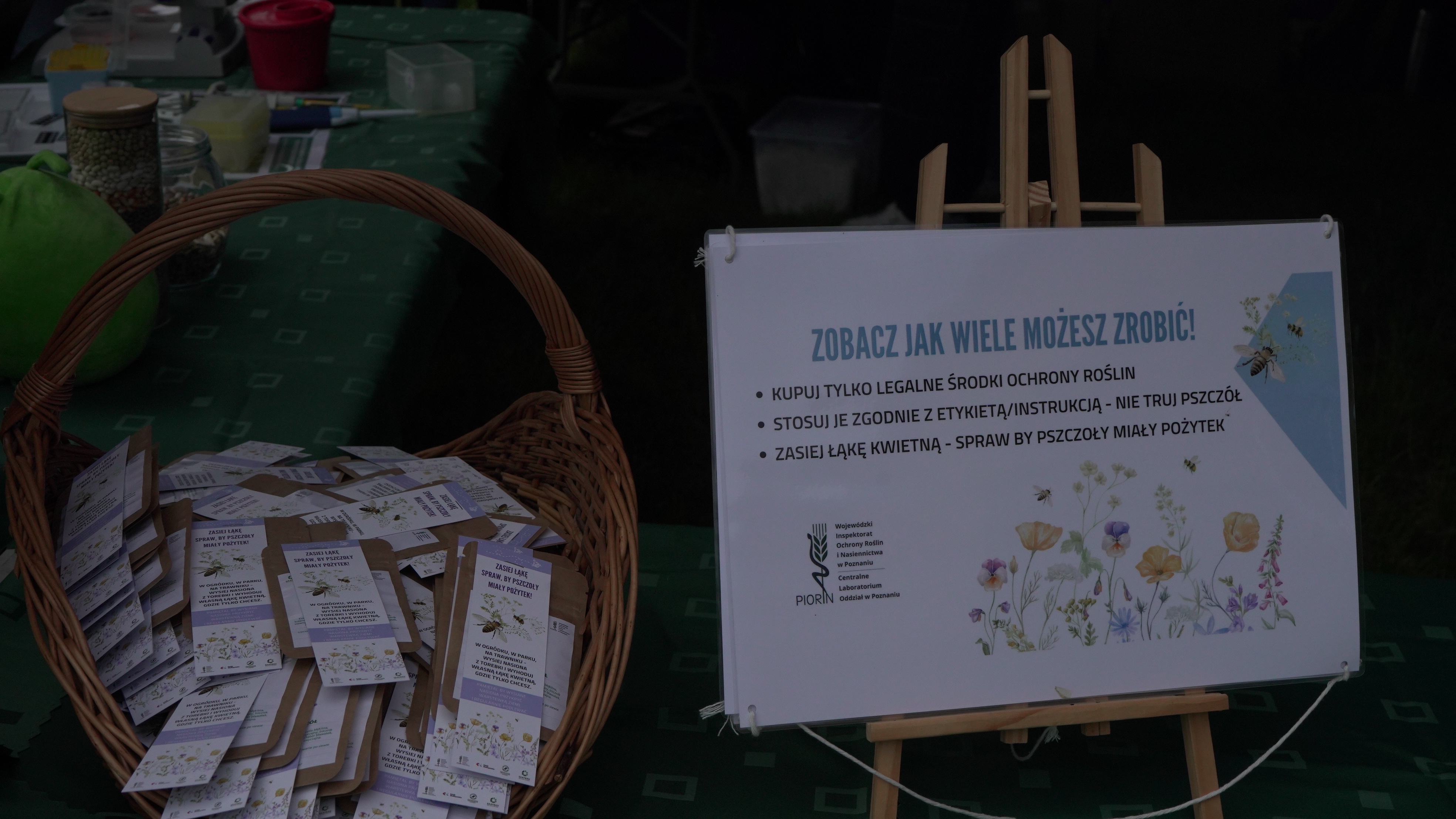24 maja 2025 r. odbyły się warsztaty rodzinne, zorganizowane w ramach projektu pn. „Drewno w każdym wymiarze” przez Regionalną Dyrekcję Lasów Państwowych w Poznaniu. Projekt ten obejmuje cykliczne warsztaty dla rodzin z dziećmi, w trakcie których uczestnicy wykonują własnoręcznie przedmioty z drewna: ryczki, wózeczki, domki dla ptaków. Tym razem do współpracy zaproszona została Państwowa Inspekcja Ochrony Roślin i Nasiennictwa. W ramach warsztatów poruszana była tematyka nasion, w tym także nasion roślin miododajnych, ochrony roślin i pszczół, a dzieci wykonywały wraz z rodzicami domki dla dzikich zapylaczy. W warsztatach udział wzięli przedstawiciele Wojewódzkiego Inspektoratu Ochrony Roślin i Nasiennictwa w Poznaniu wraz z przedstawicielkami Poznańskiego Oddziału Laboratorium GIORiN oraz Referencyjnego Laboratorium Nasiennego. Paulina Migdalska-Kustosik przeprowadziła pogadankę o roli roślin i zapylaczy w życiu człowieka, oraz o roślinach zapewniających pożytek pszczłom. Mateusz Łuka – inspekcyjny pszczelarz opiekujący się pszczelą rodziną "Piorinków" opowiedział o hodowli pszczół i produktach pszczelich oraz odpowiedział na ważne pytanie:czy w ulu jest królowa czy matka pszczela. Natomiast przedstawicielki Centralnego Laboratorium GIORiN oraz Referencyjnego Laboratorium Nasiennego zorganizowały mobilne laboratorium PIORiN w plenerze. W ramach działania laboratorium można byo nauczyć się obsługi pipety, obejrzeć preparaty roślinne z widocznymi objawami chorobowymi, zrobić wyklejankę nasienną, nauczyć się rozpoznawać najpopularniejsze nasiona czy obejrzeć kiełkujące rośliny.