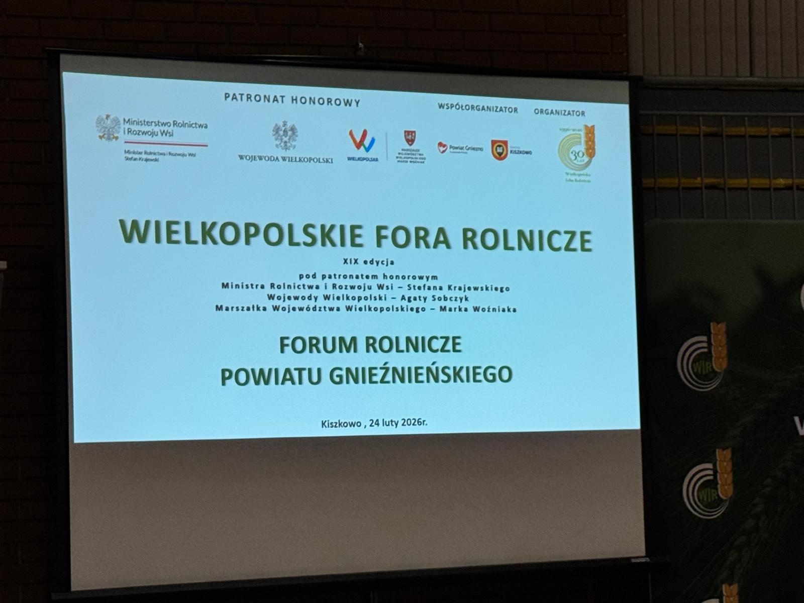 15 spotkanie z trwającego właśnie cyklu konferencji pt. "Wielkopolskie Fora Rolnicze" odbyło się 24 lutego 2026 r. w Hali Widowiskowo-Sportowej w Kiszkowie. Spotkanie dedykowane rolnikom z powiatu gnieźnieńskiego zorganizowała Wielkopolska Izba Rolnicza.