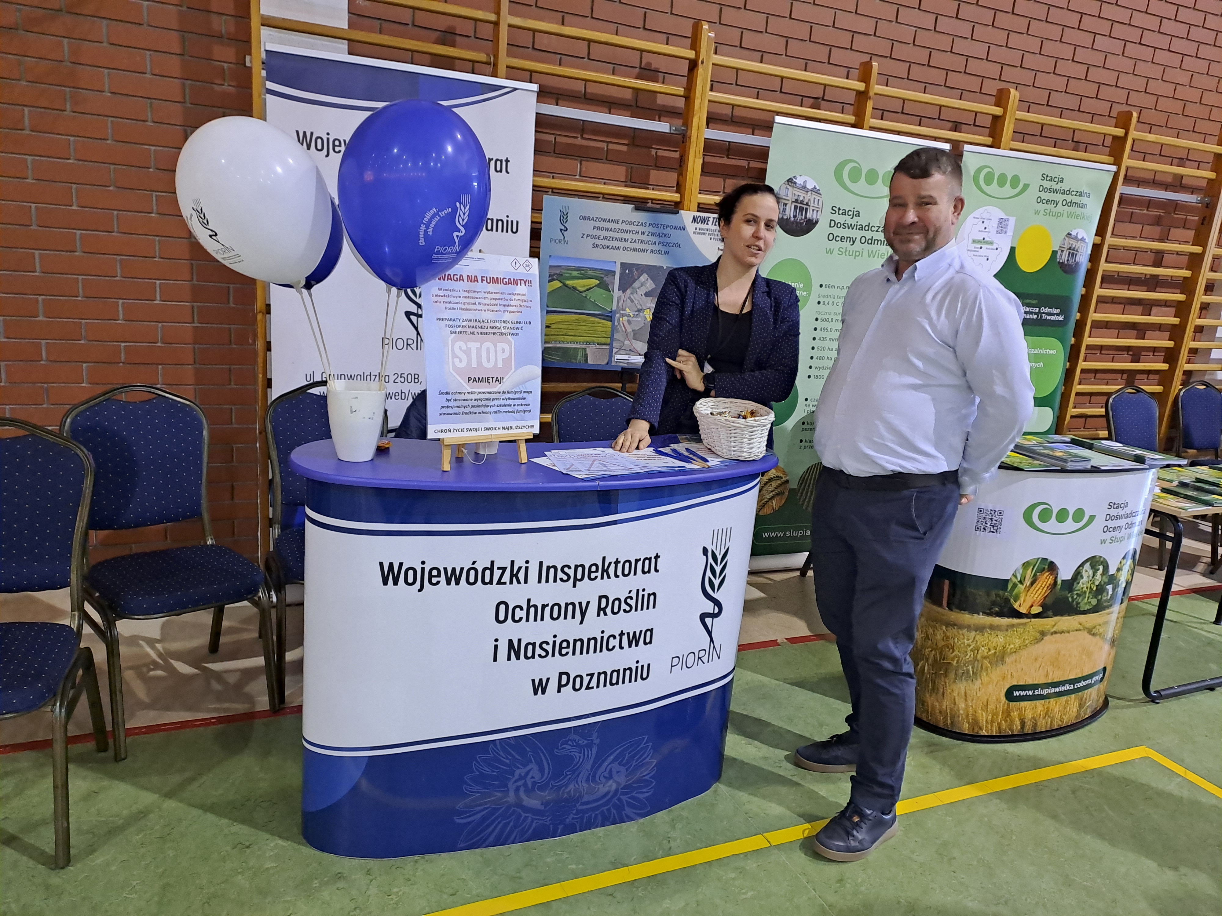 Na spotkaniu obecni byli także pracownicy Wielkopolskiego Wojewódzkiego Inspektoratu Ochrony Roślin i Nasiennictwa Oddział w Gnieźnie, którzy zorganizowali i obsługiwali stoisko informacyjne Inspektoratu. Stoisko cieszyło się dużym zainteresowaniem uczestników spotkania. Inspektorzy odpowiadali na liczne pytania rolników dotyczące przede wszystkim zmian wchodzących w marcu br, a wynikających ze zmian w ustawie z dnia 7 listopada 2025 r. o zmianie ustawy o ochronie roślin przed agrofagami oraz niektórych ustaw (Dz.U. z 2025 r. poz. 1709) oraz w ustawie z dnia 21 listopada 2025 r. o zmianie ustawy o środkach ochrony roślin (Dz. U. Z 2025 r. poz. 1697). Szczególną uwagę zwracano na zagrożenie fumigantami i zmiany dotyczące obrotu tymi preparatami. Omówione zostały także zagadnienia dotyczące wykorzystania dronów zarówno w działalności PIORiN, jak i prac nad przepisami, które określą zasady aplikacji środków ochrony roślin przy użyciu bezzałogowych statków powietrznych. Istotnym zagadnieniem poruszanym w trakcie spotkania był temat elektronicznej ewidencji zabiegów środkami ochrony roślin.