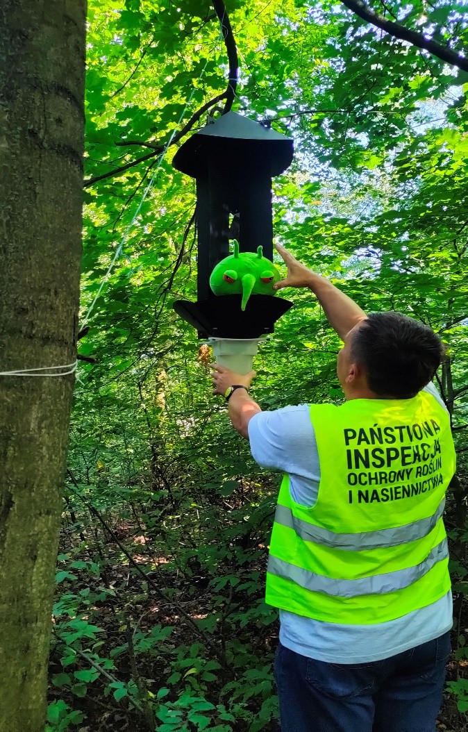 Jednym z działań podejmowanych w ramach tego programu są oceny pułapek, które umieszcza się w naturalnych siedliskach dla danego agrofaga. Inspektorzy z Oddziału we Wrześni prowadzili obserwacje pułapki feromonowej w kierunku agrofaga Anoplophora glabripennis umieszczonej w lesie w rejonie gdzie przeważają drzewa liściaste, w tym przypadku klon. Kontrola pułapki prowadzona była co dwa tygodnie. Podczas ostatniej, szóstej obserwacji pułapki, inspektorów wspierał PESTY – ambasador kampanii unijnej #PlantHealth4Life. Szczęśliwie nie stwierdzono występowania poszukiwanego agrofaga.