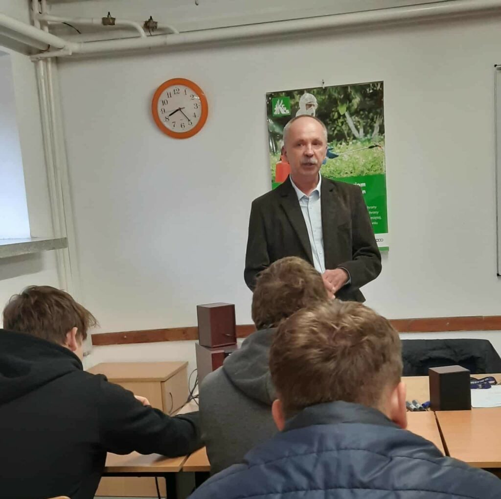 W dniu 3 listopada 2025 r. uczniowie Szkoły Branżowej w Zagórowie mieli możliwość spotkania z przedstawicielem Wojewódzkiego Inspektoratu Ochrony Roślin i Nasiennictwa w Poznaniu - Kierownikiem Oddziału w Słupcy - Zbigniewem Wiśniewskim. Młodzież z zainteresowaniem wysłuchała prelekcji związanej z zakresem działań PIORiN, jej głównych zadań i celów. Podczas spotkania zostały omówione również zagadnienia związane z ochroną roślin oraz kontrolą środków ochrony roślin, a także roli PIORiN w zapewnieniu bezpieczeństwa żywności wolnej od szkodliwych substancji. Przedstawiona prezentacja poruszała tematy związane ze stosowaniem się do zasad dobrej praktyki rolniczej, ochrony pszczół i zapylaczy. Prelegent przedstawił także zagadnienia dotyczące zwalczania agrofagów, wystawiania paszportów roślinnych przez upoważnione podmioty profesjonalne, zasad przemieszczania roślin i obrotu materiałem nasiennym.