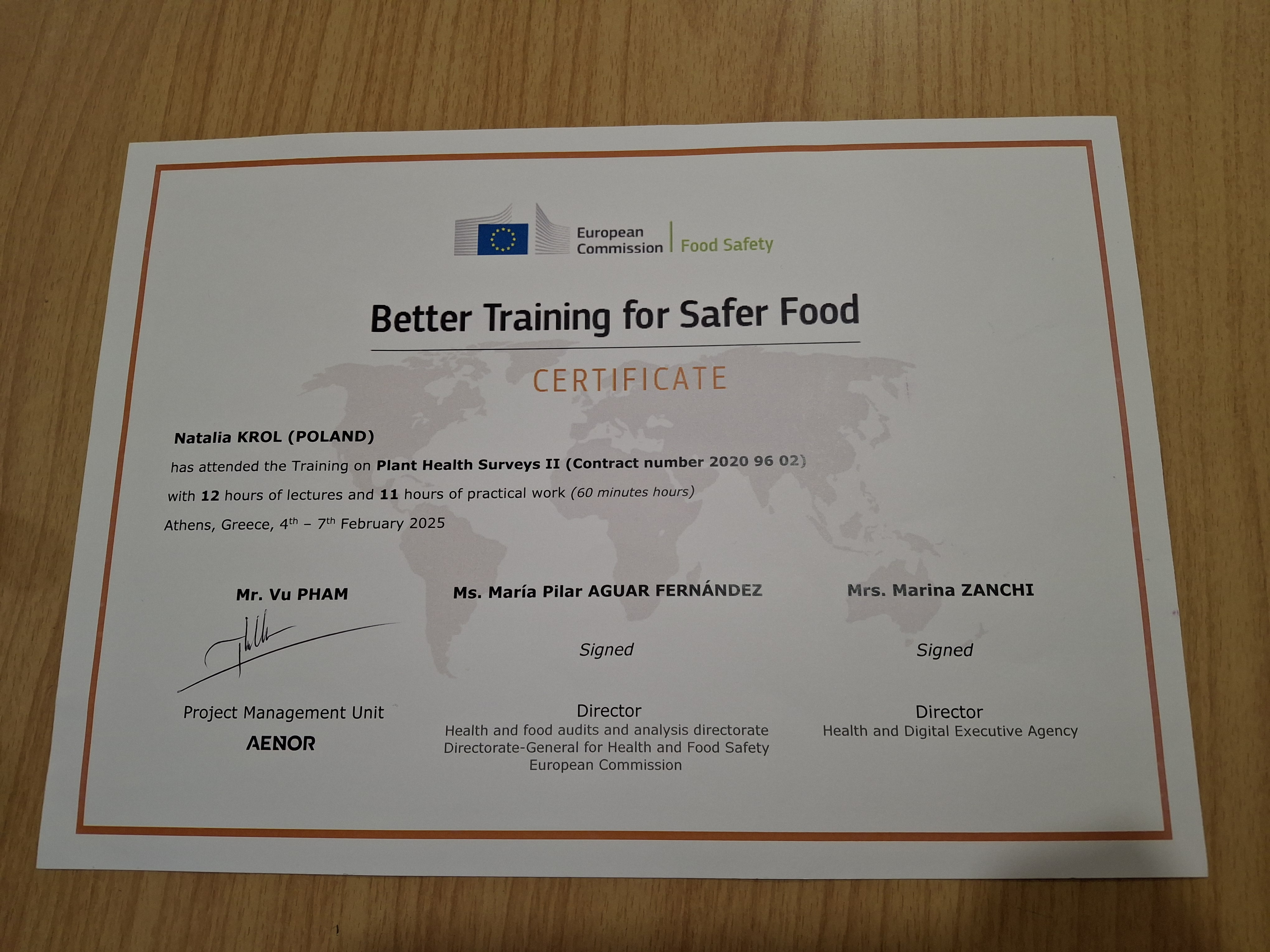 Szkolenie odbyło się w Atenach a uczestnikami byli pracownicy różnych instytucji odpowiedzialnych za zdrowie roślin w krajach członkowskich Unii Europejskiej dalej UE. Podczas szkolenia omówiono m. in. zagrożenia dla UE ze strony nowych agrofagów, zasady monitorowania występowania tych agrofagów oraz wyznaczanie obszarów, w których muszą być podejmowane działania w celu ich zwalczenia.