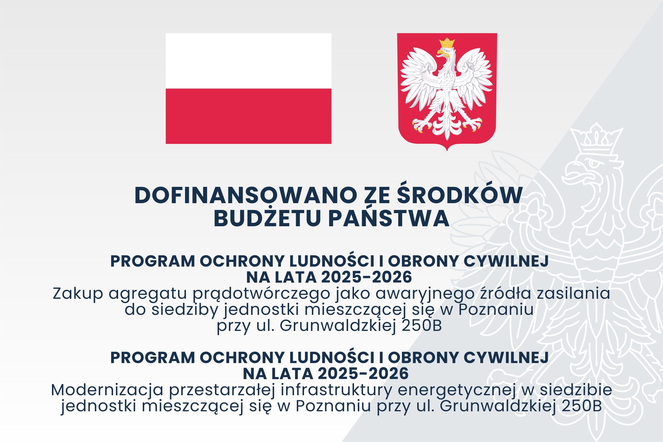 - Zakup agregatu prądotwórczego jako awaryjnego źródła zasilania do siedziby jednostki mieszczącej się w Poznaniu przy ul. Grunwaldzkiej 250B,