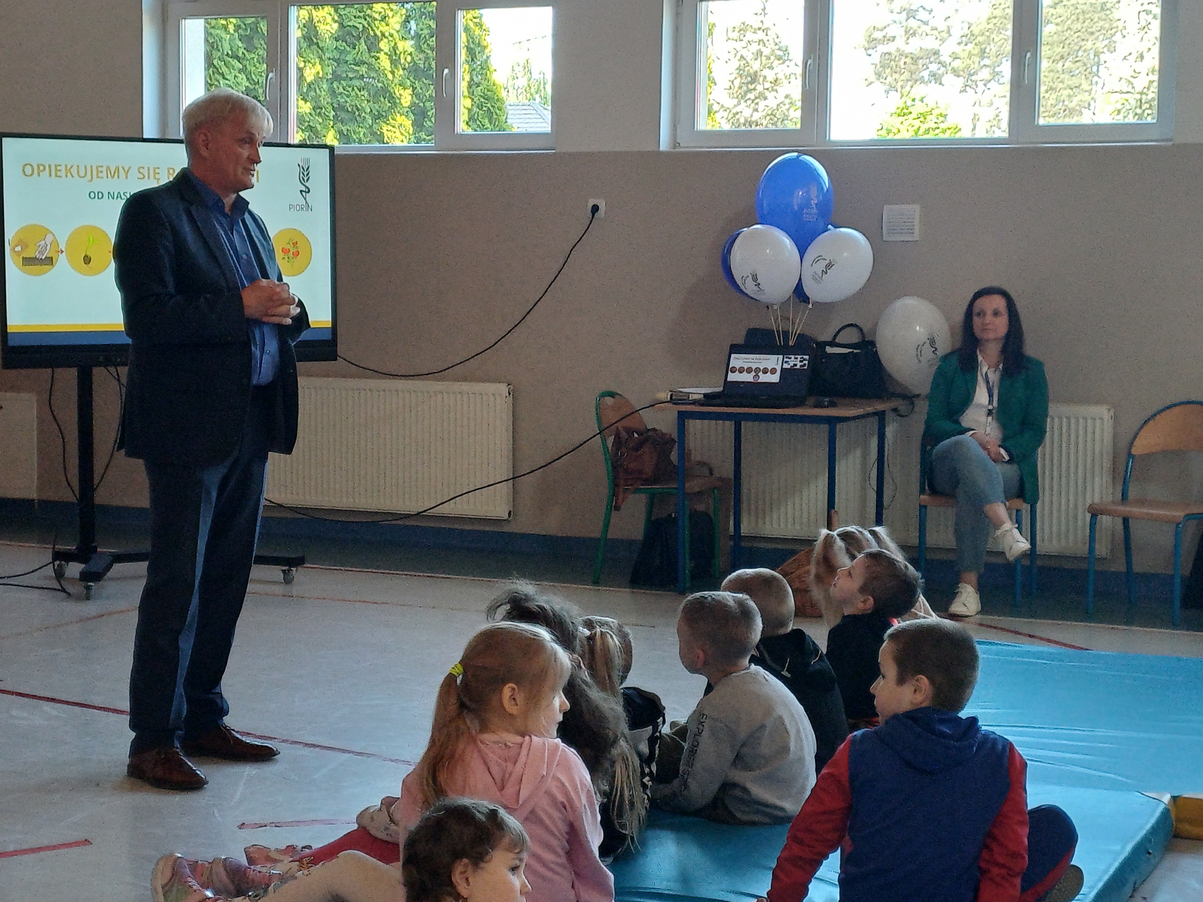 O pracy inspektorów PIORiN i Międzynarodowym Dniu Zdrowia Roślin opowiadał dzieciom ze szkoły Twórczej Integracji w Milinie kierownik Oddziału w Koninie - Janusz Brzęcki