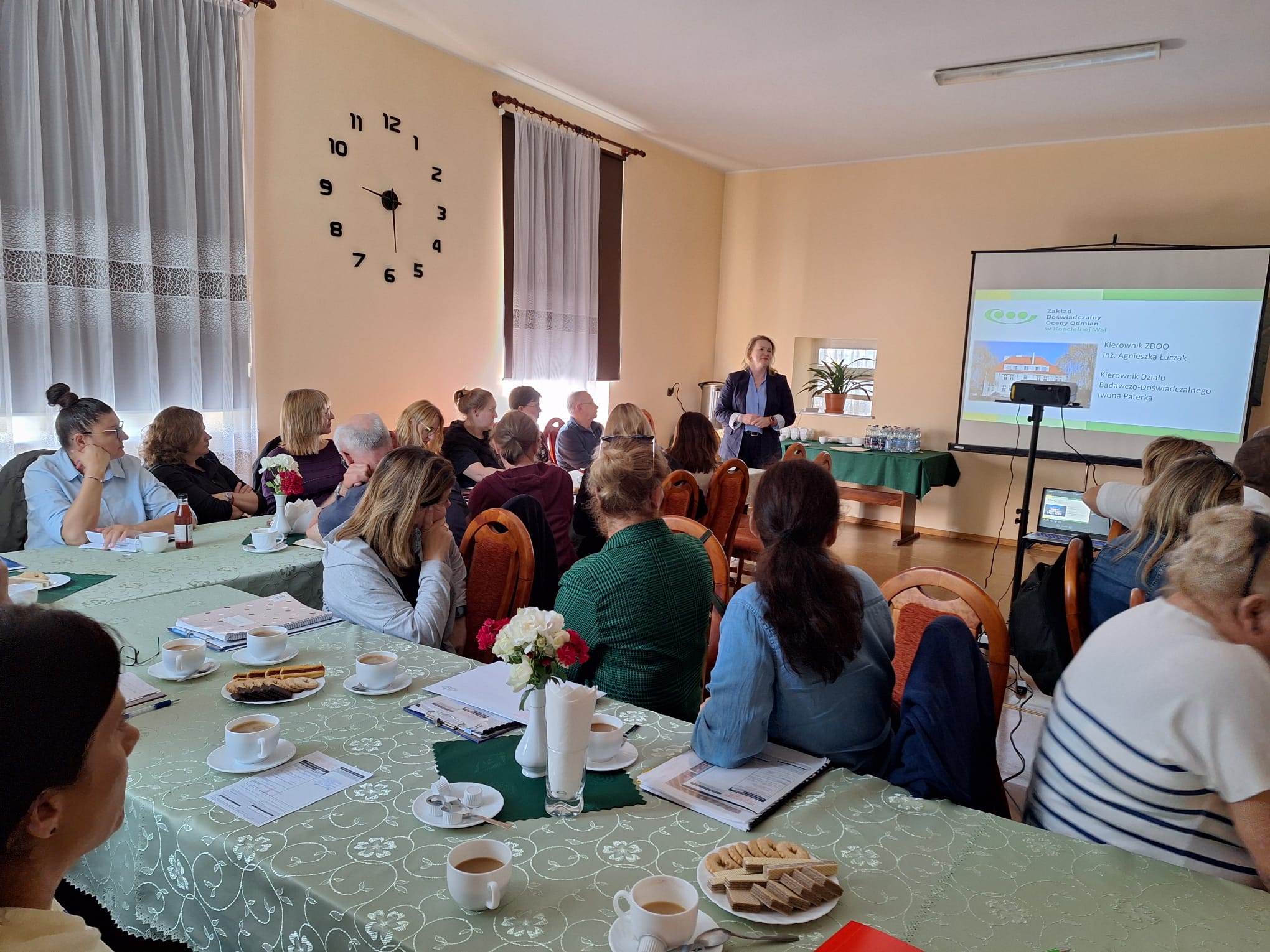 Pierwszy wykład szkoleniowy przeprowadzony został przez Kierownika Zakładu Doświadczalnego Oceny Odmian w Kościelnej Wsi Panią Agnieszkę Łuczak, która przedstawiła ogólne informacje dotyczące ZDOO w Kościelnej Wsi. Następnie Małgorzata Czech-Materka Specjalista w Dziale Nadzoru Nasiennego przypomniała metody oceny polowej i zasady kontroli kwalifikatorów akredytowanych, urzędowych oraz tymczasowego eksperymentu.