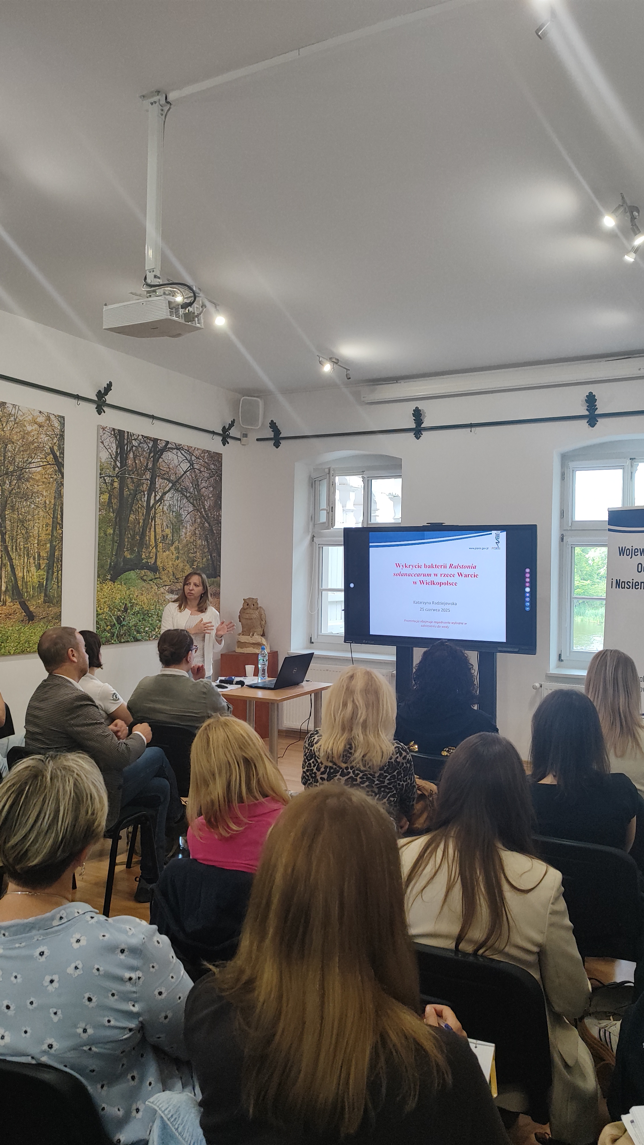 Spotkanie rozpoczął Wielkopolski Wojewódzki Inspektor Ochrony Roślin i Nasiennictwa w Poznaniu Radosław Grychowski, który wraz z podleśniczym Leśnictwa Czeszewo Markiem Dobroczyńskim powitał zebranych. Następnie kierownik Działu Nadzoru Fitosanitarnego - Katarzyna Radziejewska przedstawiła informacje dotyczące wykrycia bakterii Ralstonia solanacearum w rzece Warcie na terenie Wielkopolski dotyczące m.in. dróg rozprzestrzeniania się bakterii w środowisku, planowanych działań m in. pobrań prób wody oraz wytycznych dotyczących postępowania po wykryciu bakterii w wodzie.