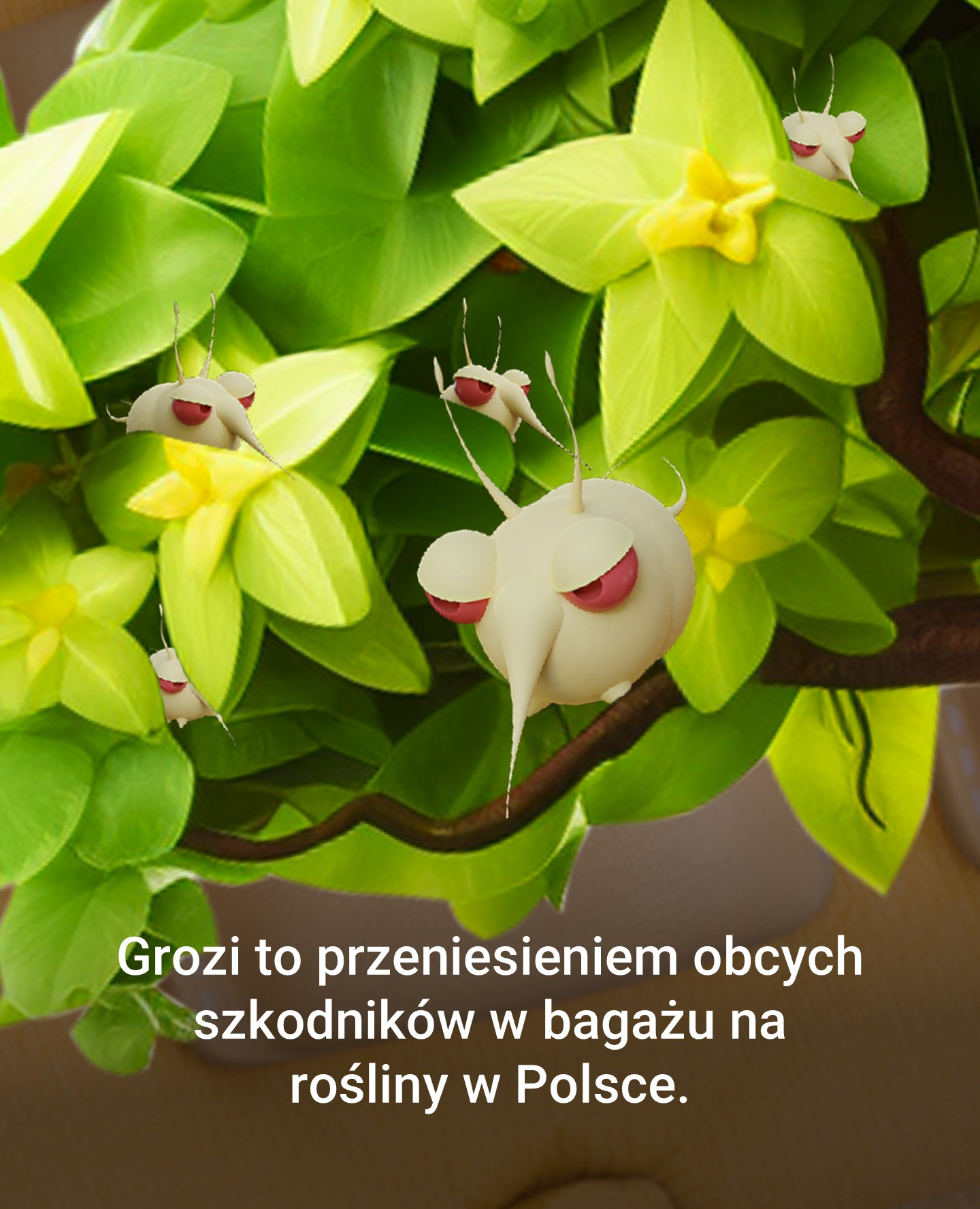 - Podróżując poza granice Unii Europejskiej, nie powinno się przywozić ze sobą żadnych roślin, kwiatów, nasion, owoców ani warzyw. Każda z takich zagranicznych pamiątek może spowodować przywiezienie „pasażera na gapę” czyli szkodnika, który może zagrażać zdrowiu roślin w Unii Europejskiej.