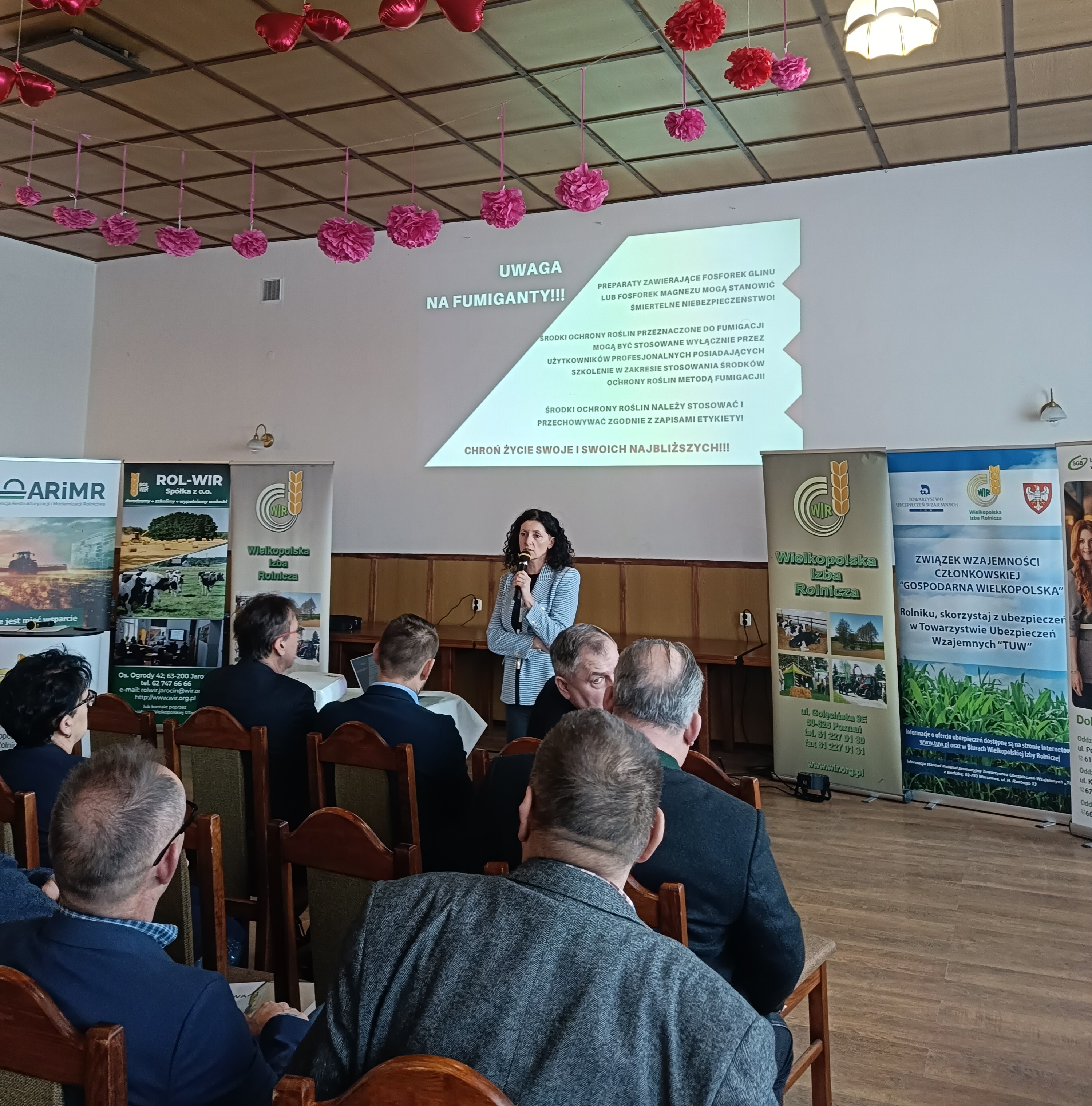 Kierownik Oddziału w Obornikach WIORiN w Poznaniu Agnieszka Żmudzka poruszyła bardzo istotne zagadnienia dotyczące środków ochrony roślin a w szczególności fumigantów. Omówiła przepisy dotyczące ich zakupu i stosowania oraz zagrożenia związane z preparatami o działaniu gazowym. Pani Kierownik wspomniała również o wykrywaniu pozostałości substancji czynnych w pobieranych próbach płodów rolnych, jak również o zachowaniu bezpieczeństwa fitosanitarnego w gospodarstwach rolnych.