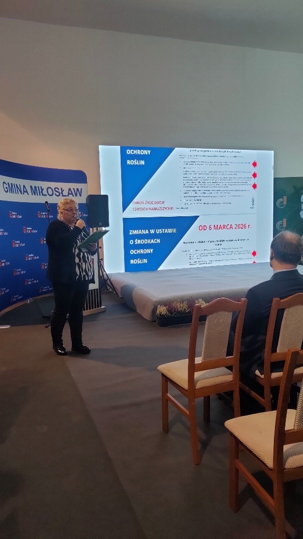 Spotkanie w Miłosławiu otworzył Przewodniczący Rady Powiatowej WIR we Wrześni Andrzej Waszak. Na spotkaniu obecni byli Starosta Wrzesińska Anita Kraska, parlamentarzyści oraz przedstawiciele instytucji okołorolniczych. Wojewódzki Inspektorat Ochrony Roślin i Nasiennictwa w Poznaniu reprezentowała p.o. kierownika Oddziału we Wrześni – Karolina Szybiak-Jasińska, która w swoim wystąpieniu poruszyła zagadnienia dotyczące rolnictwa w kontekście działalności WIORiN w Poznaniu w 2026 roku. Pani kierownik omówiła zmiany opisane w ustawie z dnia 7 listopada 2025 r. o zmianie ustawy o ochronie roślin przed agrofagami oraz niektórych ustaw (Dz.U. z 2025 r. poz. 1709) oraz w ustawie z dnia 21 listopada 2025 r. o zmianie ustawy o środkach ochrony roślin (Dz. U. Z 2025 r. poz. 1697)