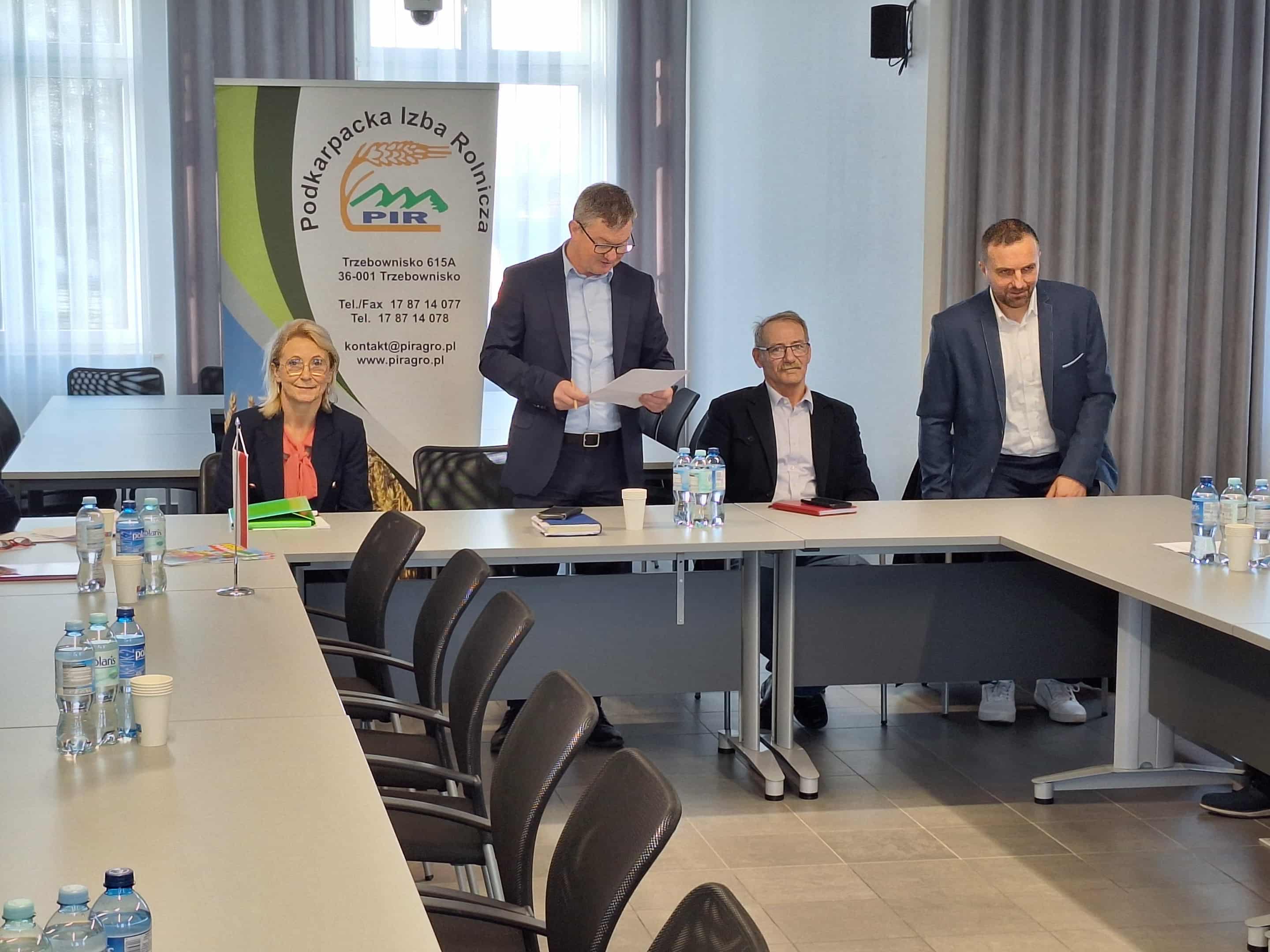 W posiedzeniu wzięli udział: Wojciech Naprawa – Przewodniczący mieleckiej Rady Powiatowej Podkarpackiej Izby Rolniczej, Józef Walczak z Zarządu Podkarpackiej Izby Rolniczej, Zdzisław Lasota – Zastępca Burmistrza Radomyśla Wielkiego, Grzegorz Durak – Dyrektor Powiatowego Urzędu Pracy, Adriana Miłoś – Zastępca Dyrektora Powiatowego Urzędu Pracy, Jarosław Radosz
